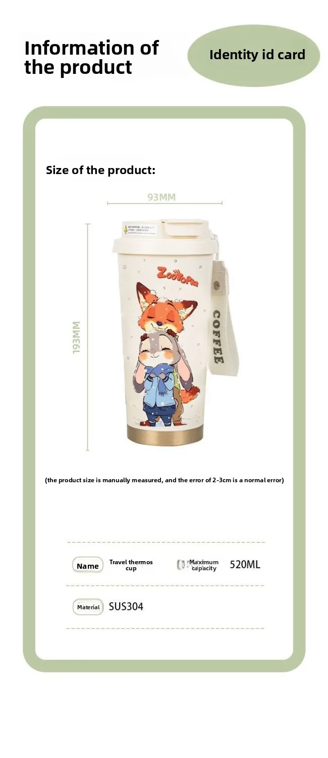 Disney Zootopia Coffee Mug Judy Nick 520ML 304 Stainless Insulated Cup Cartoon Thermos Cup Kids Student Water Cup Holiday Gift