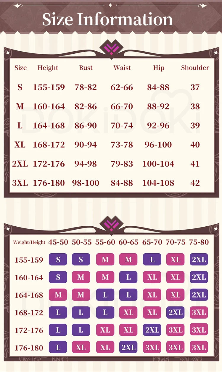 Please read the size chart carefully. (◕ˇ∀ˇ◕)Welcome contact us for help about size choosing with your height ,weight ,waist ,bust,hip measurement.