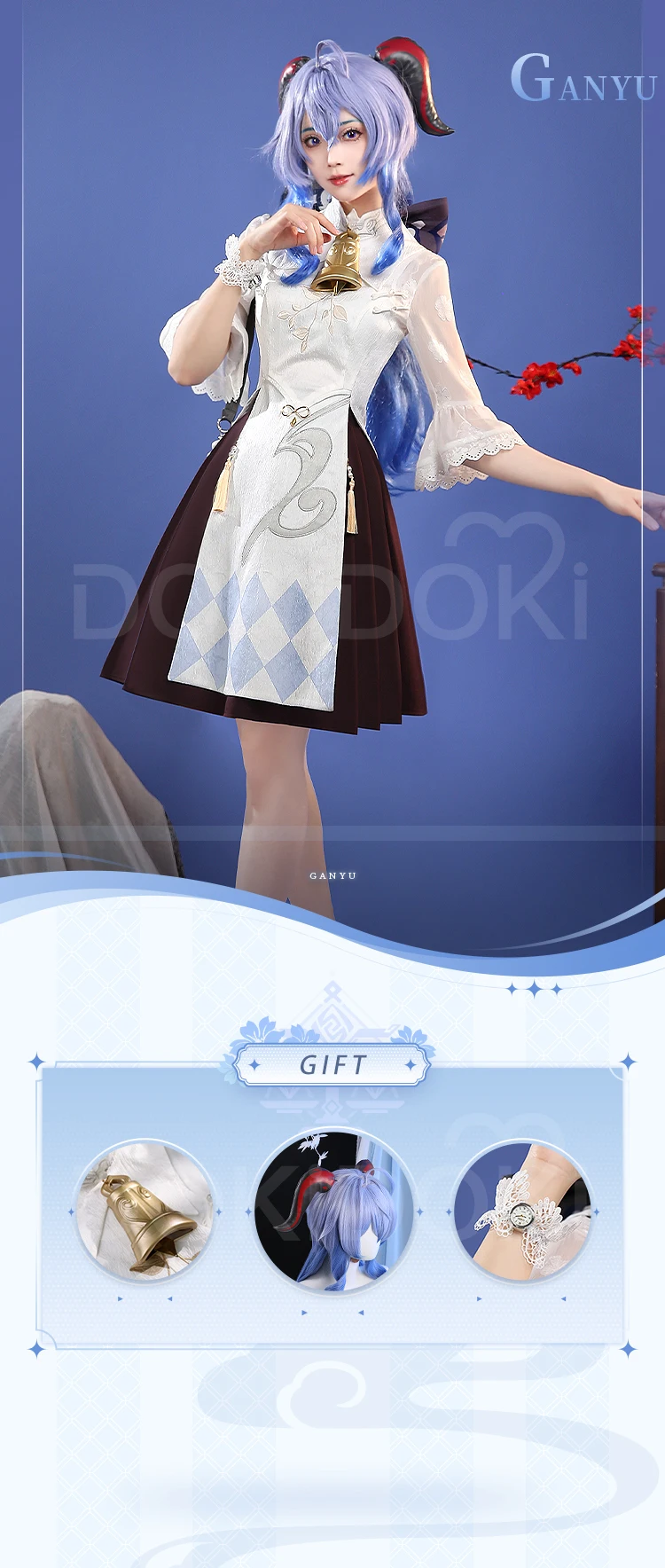 Ganyu Cosplay Costume Game Genshin Impact DokiDoki-SR Genshin Imapact x Hey Tea Ganyu Cheongsam Women Ganyu Doujin