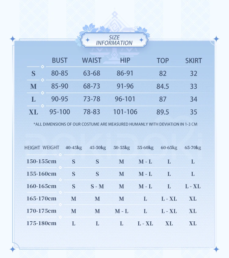 Asian size-Please read the size chart carefully. (◕ˇ∀ˇ◕)Welcome contact us for help about size choosing with your height ,weight ,waist ,bust,hip measurement.