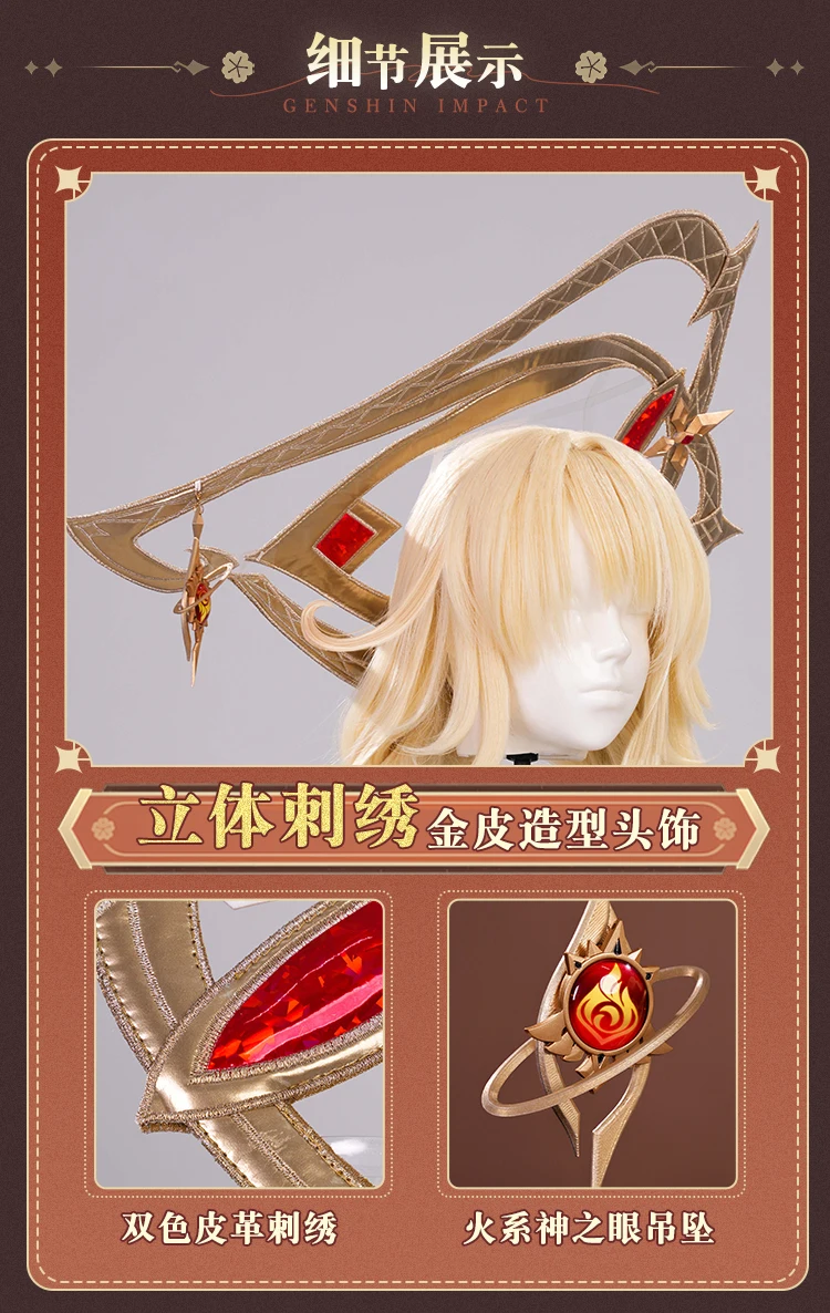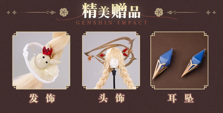 Genshin Impact Alice Cosplay Costume Wig Dress Headwear Ring Game Uniform Halloween Party for Women Girls Role Play Outfit Props