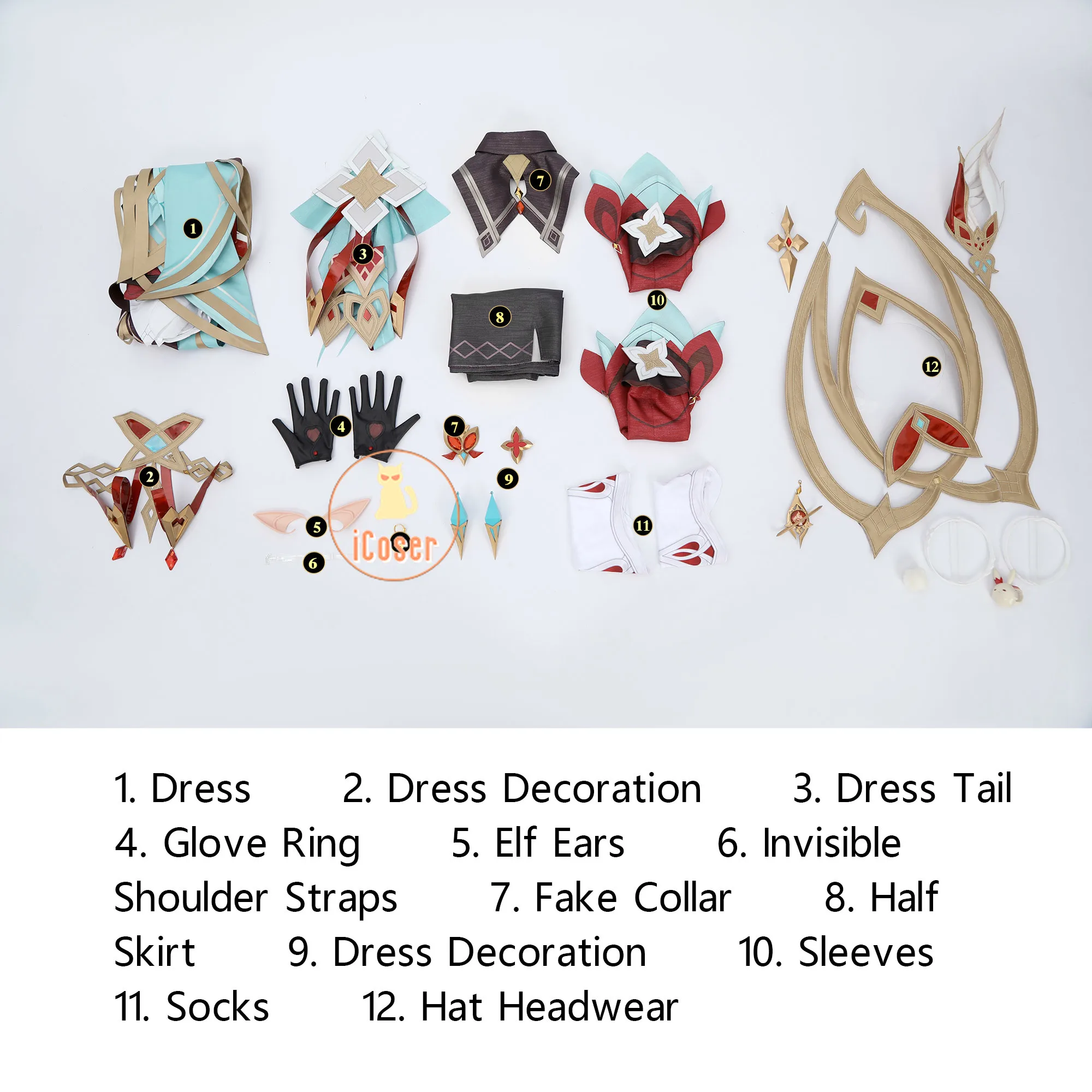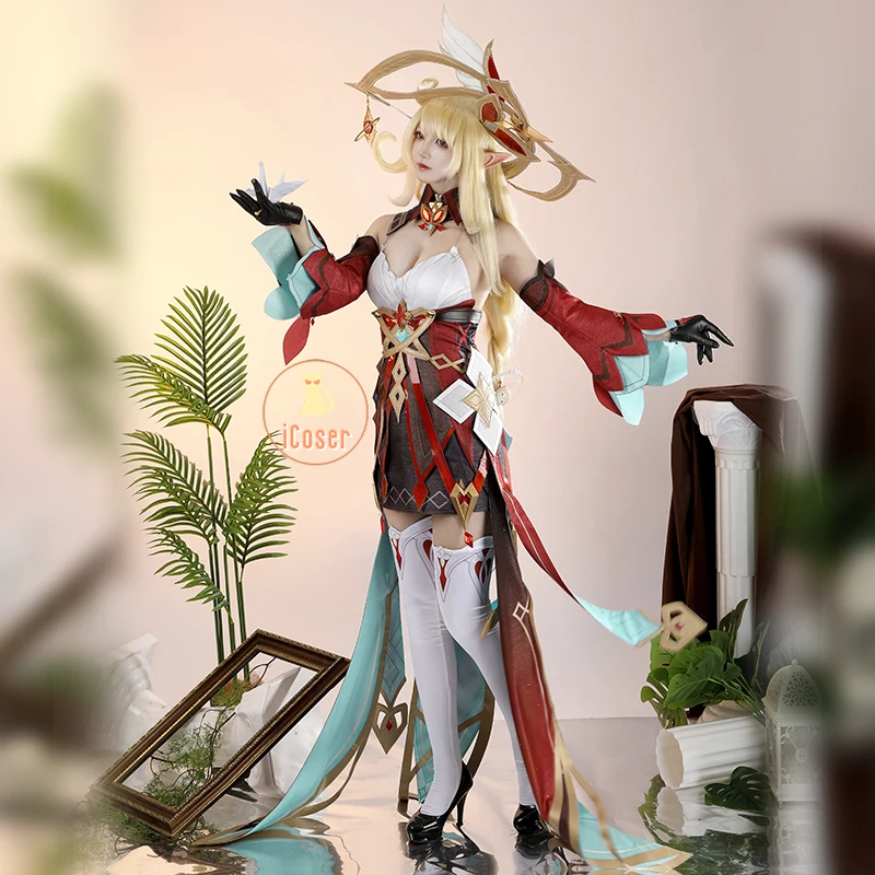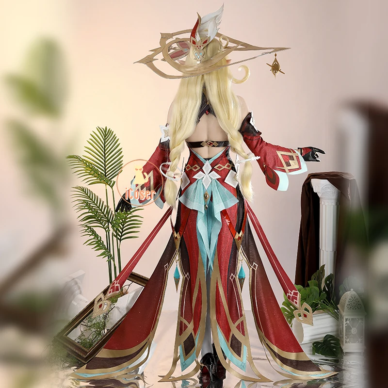 Genshin Impact Alice Cosplay Costume Wig Dress Uniform Headwear Carnival Halloween Party Women Girls Holiday Role Play Outfit