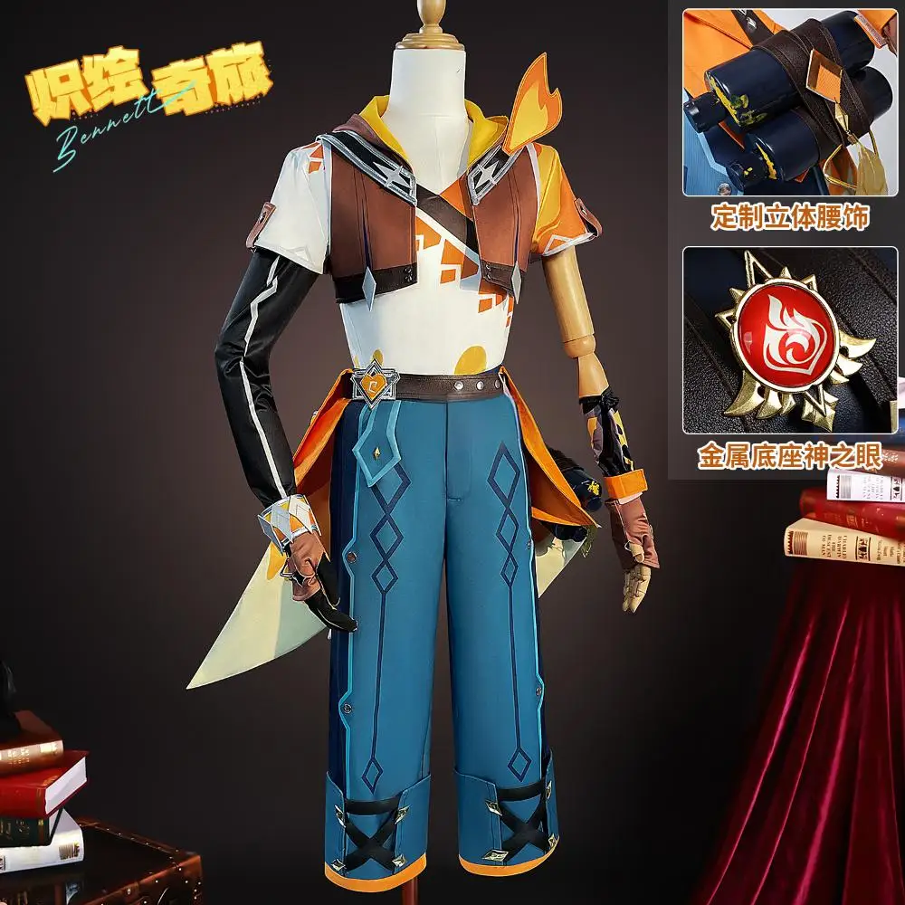 Genshin Impact Bennett Cosplay Costume Wig Adventures in Blazing Hue Uniform Headwear Mondstadt Halloween Party Women Men Props