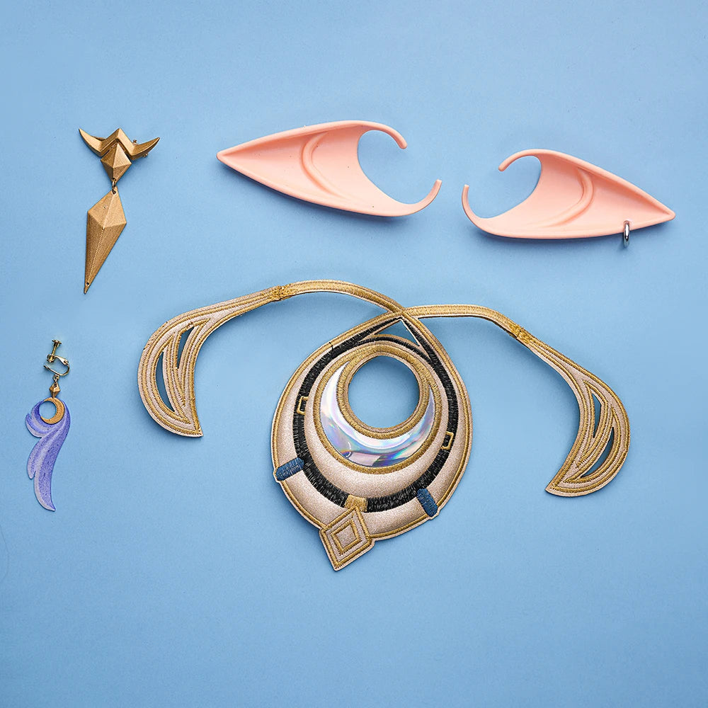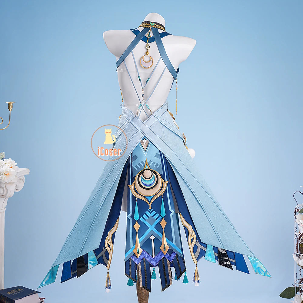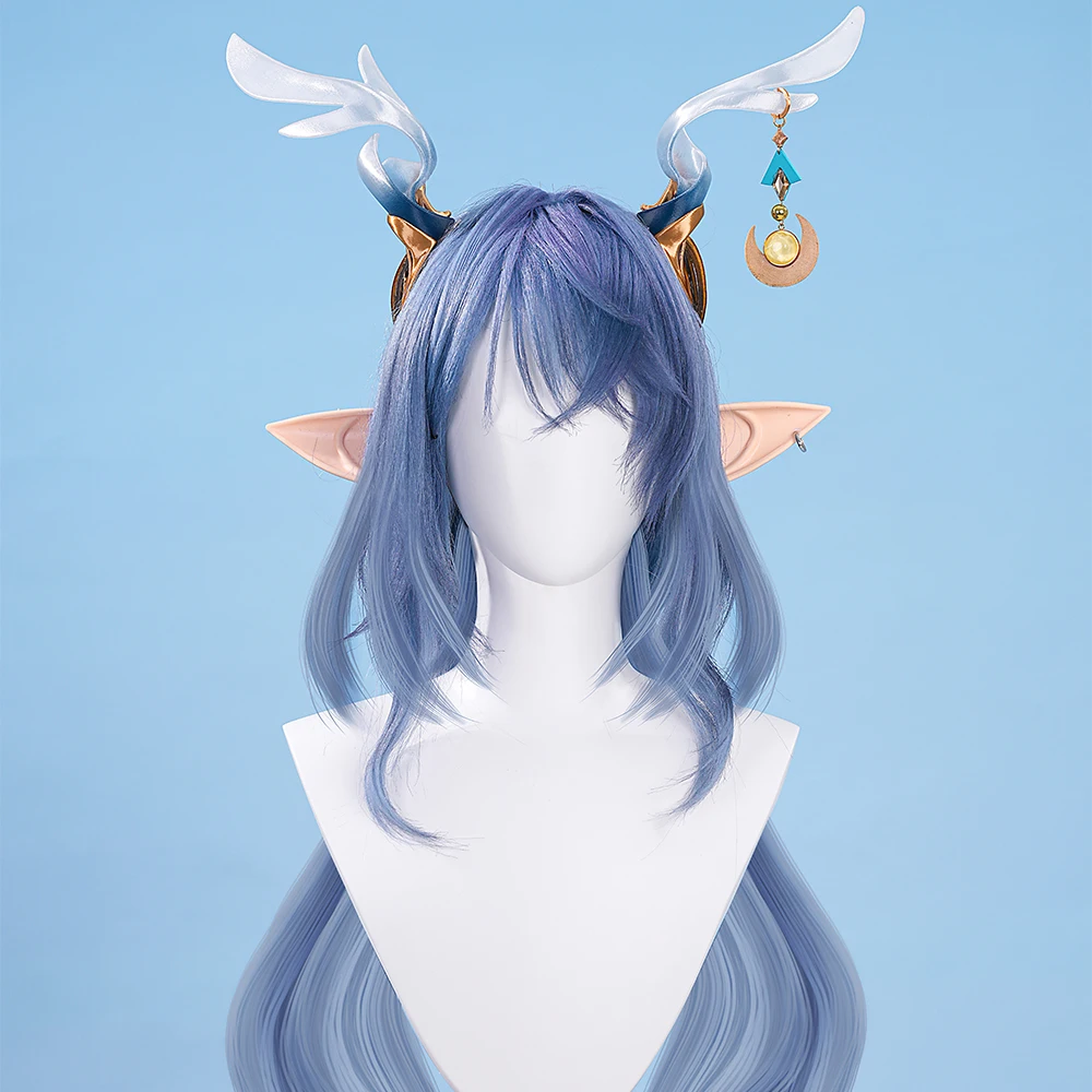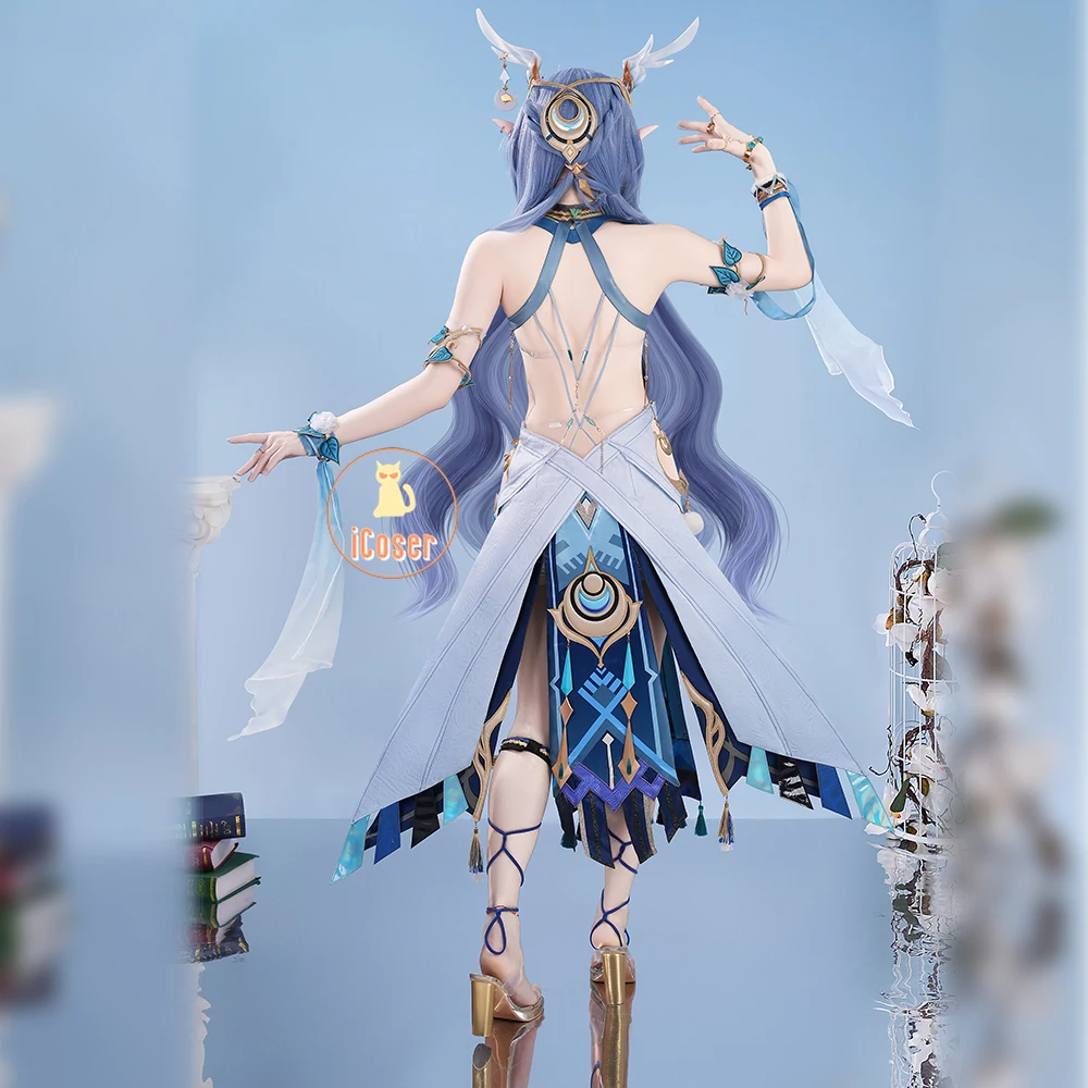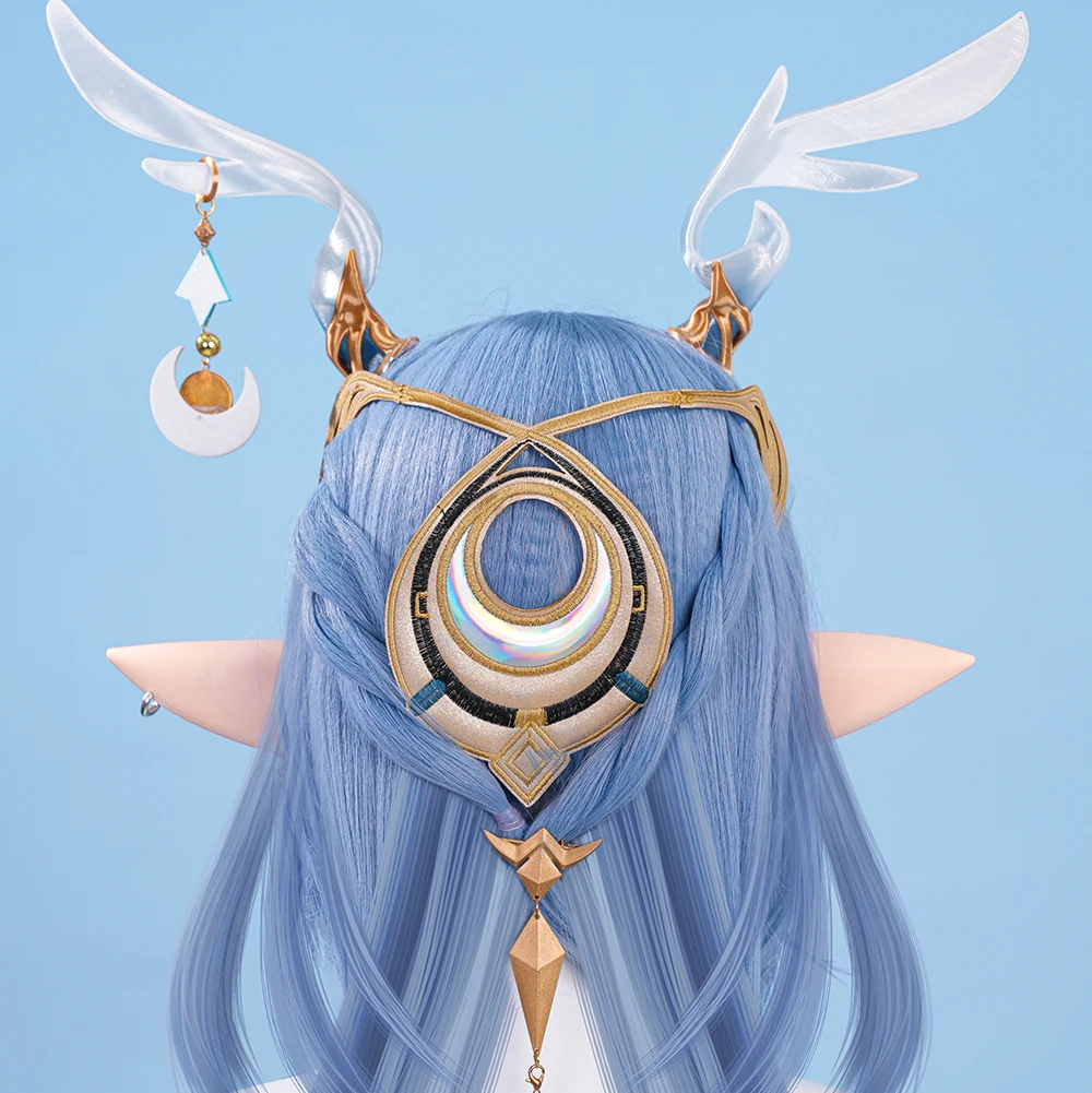 Genshin Impact Lauma Cosplay Costume Wig Dress Uniform Headwear Earrings Frostmoon Scions Halloween Party for Women Girls iCoser