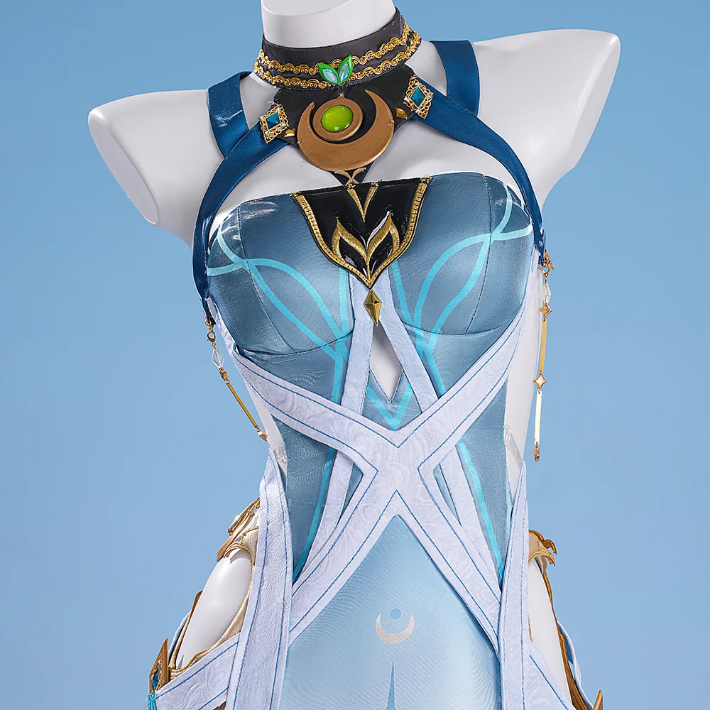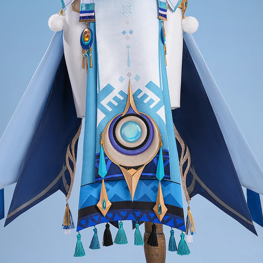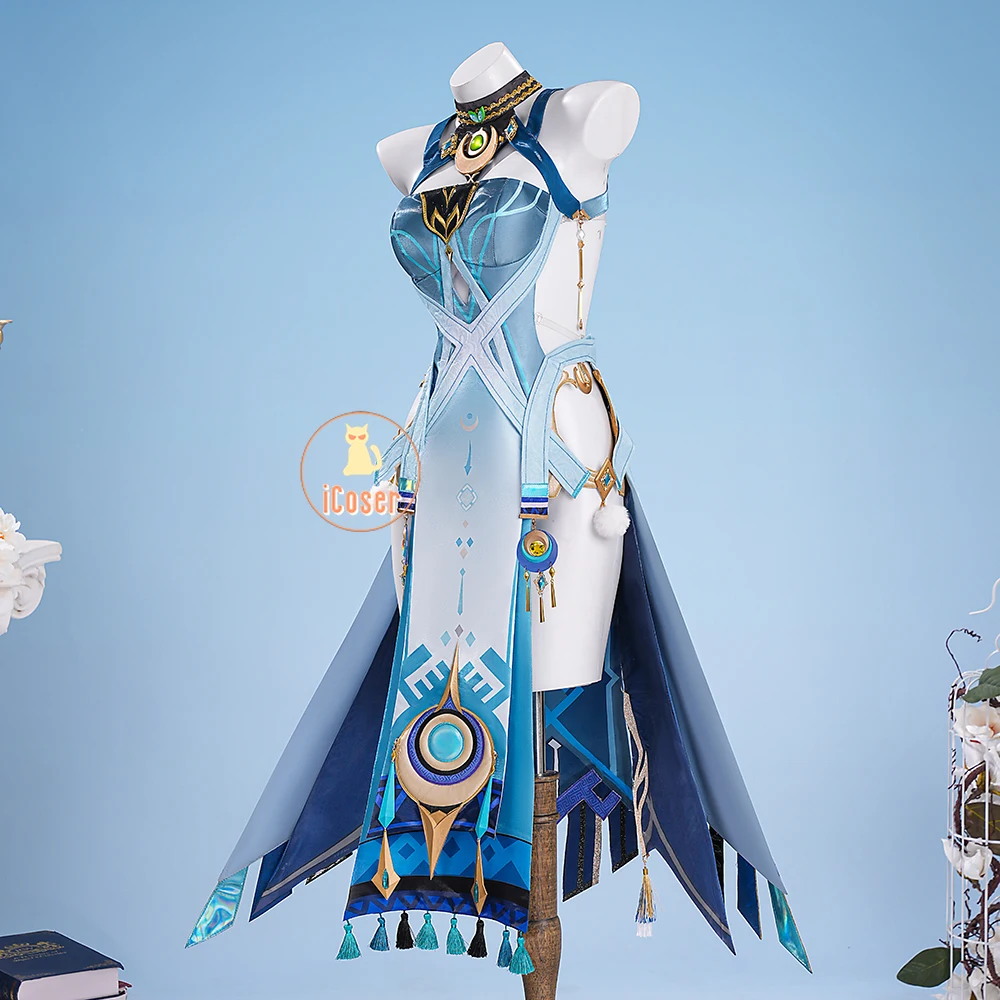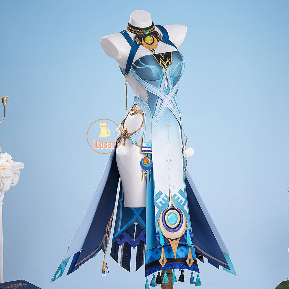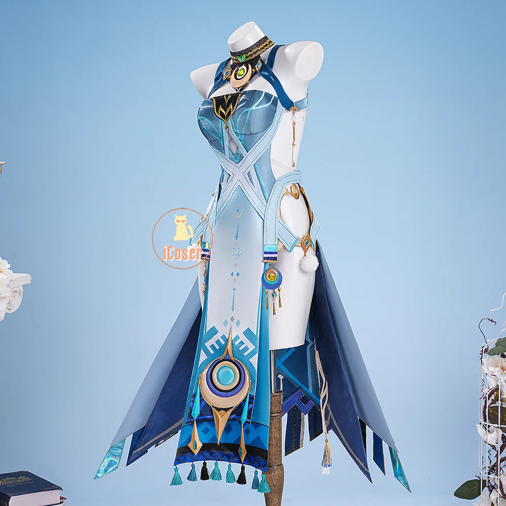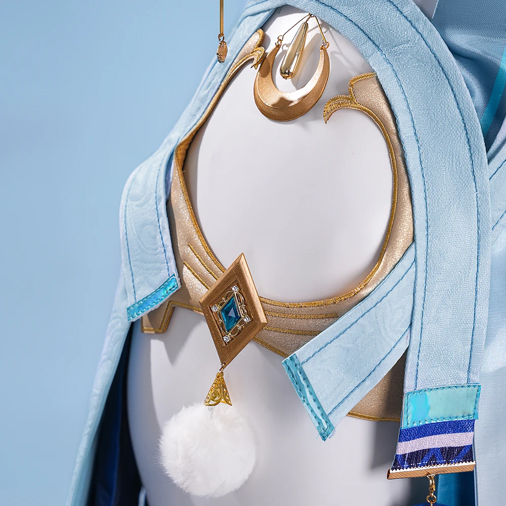 Genshin Impact Lauma Cosplay Costume Wig Dress Uniform Headwear Earrings Frostmoon Scions Halloween Party for Women Girls iCoser