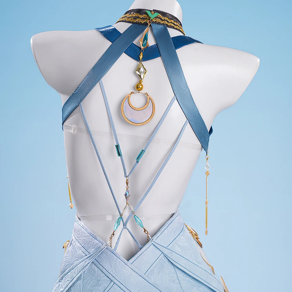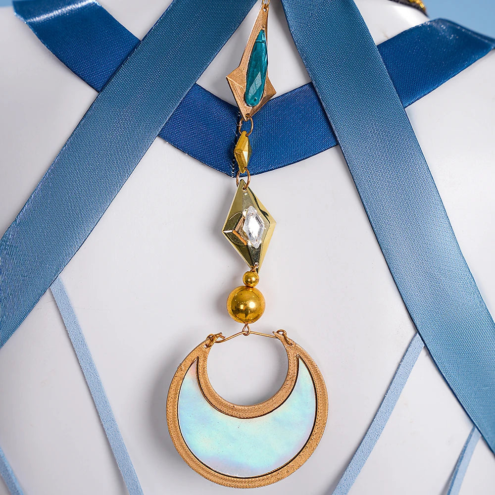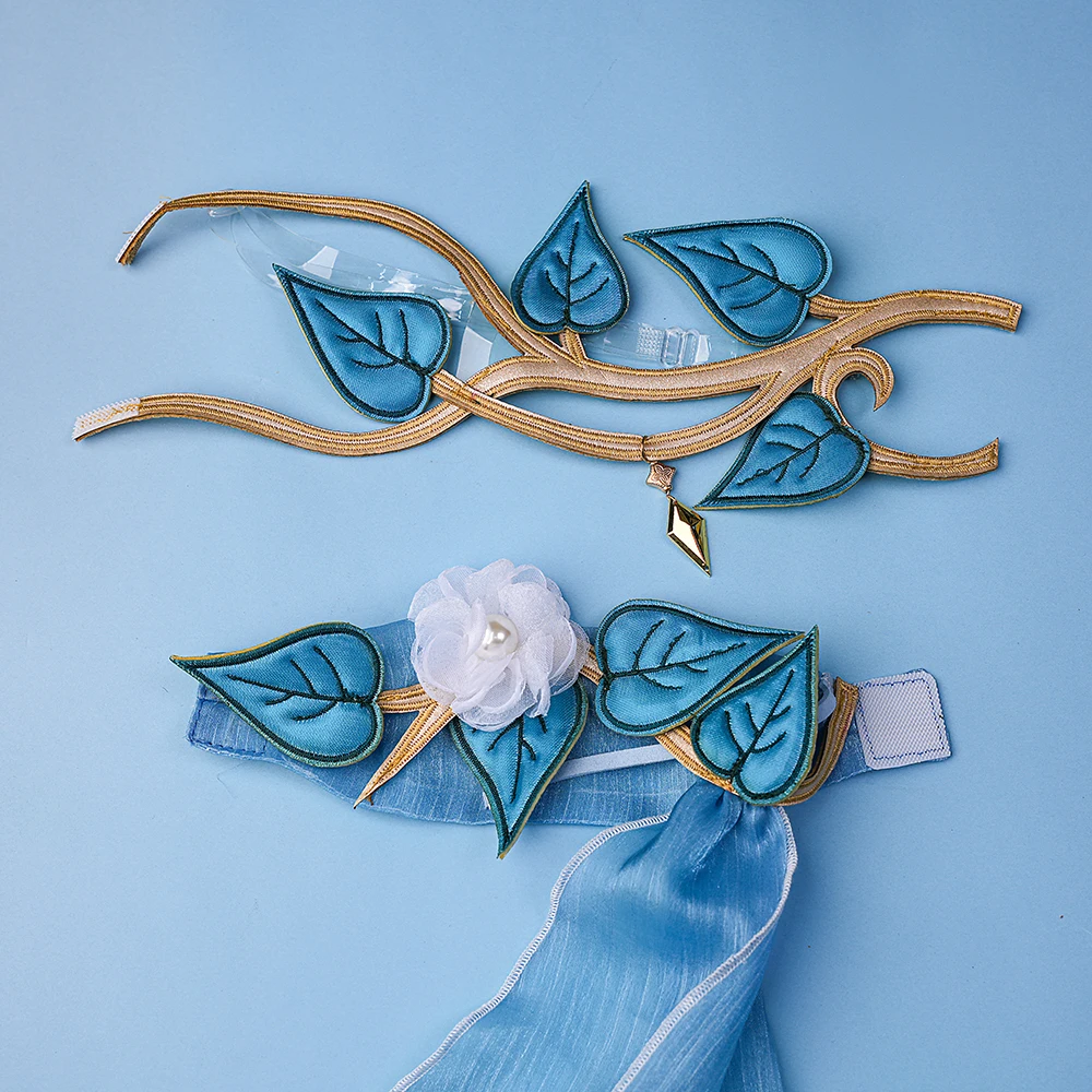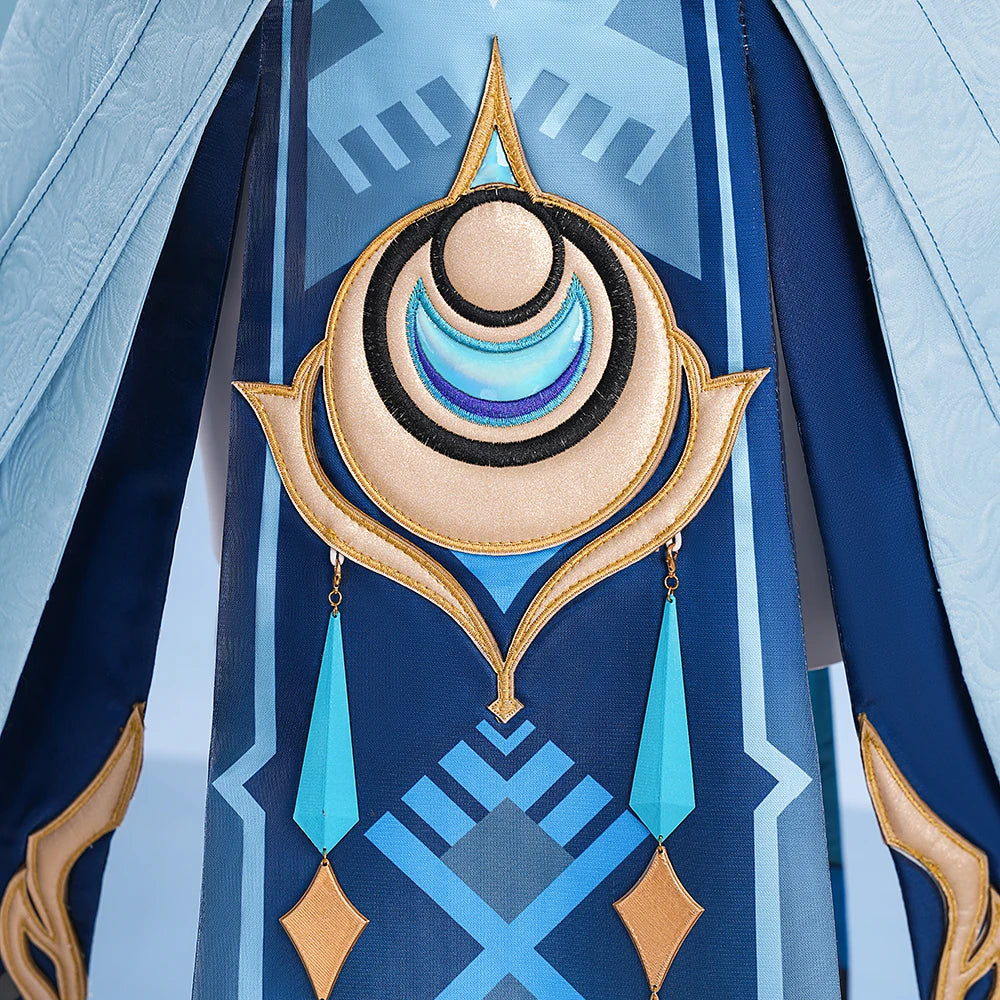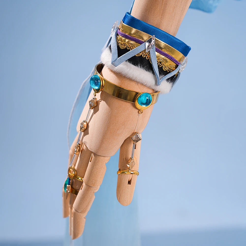 Genshin Impact Lauma Cosplay Costume Wig Dress Uniform Headwear Earrings Frostmoon Scions Halloween Party for Women Girls iCoser