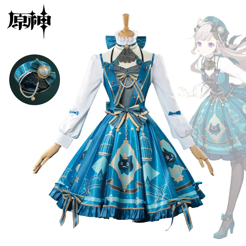 Genshin Impact Lynette Cosplay Costume Wig Dress Uniform Hat Magician Outfit Fontaine Halloween Party for Women Girls Game Props