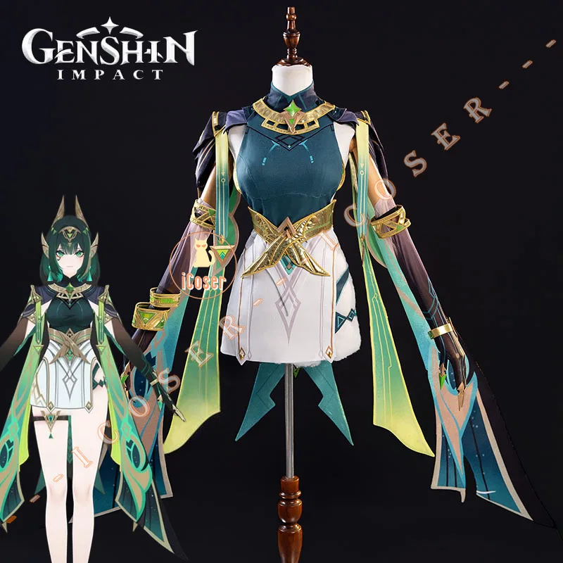 Genshin Impact Nefer Cosplay Costume Wig Dress Uniform Outfit Headwear Carnival Halloween Party for Women Girls Accessory iCoser