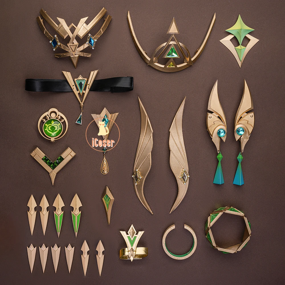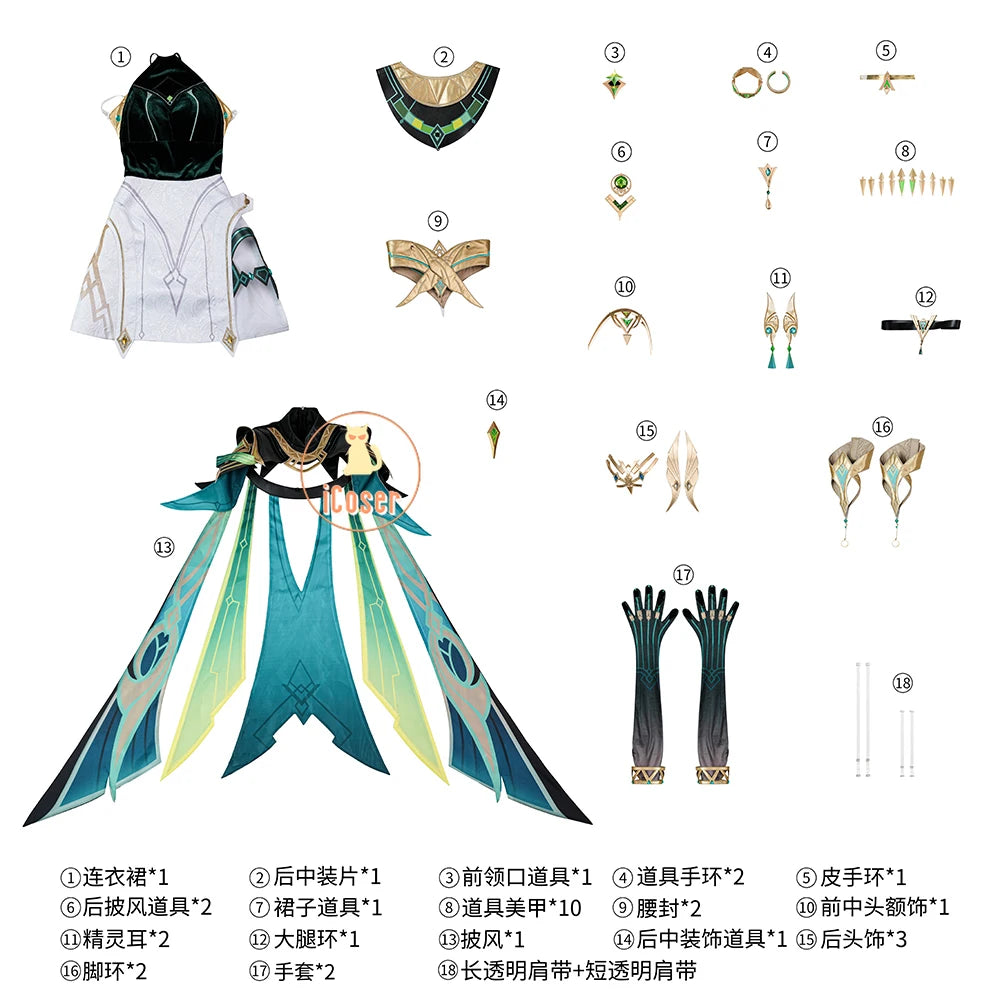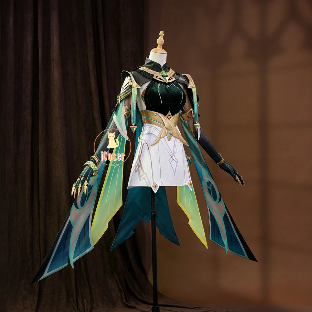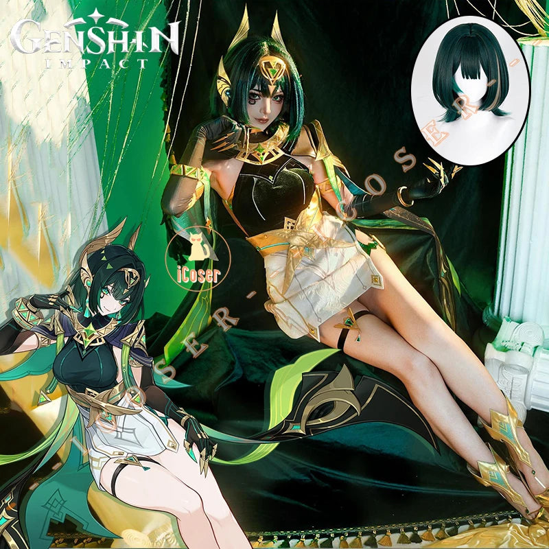 Genshin Impact Nefer Cosplay Costume Wig Dress Uniform Outfit Headwear Carnival Halloween Party for Women Girls Accessory iCoser