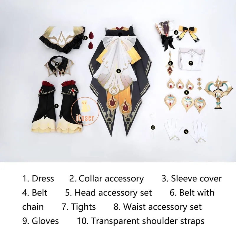 Genshin Impact Sandrone Cosplay Costume Wig Marionette Dress Headwear Eleven Fatui Harbingers Halloween Women Girls Role Play