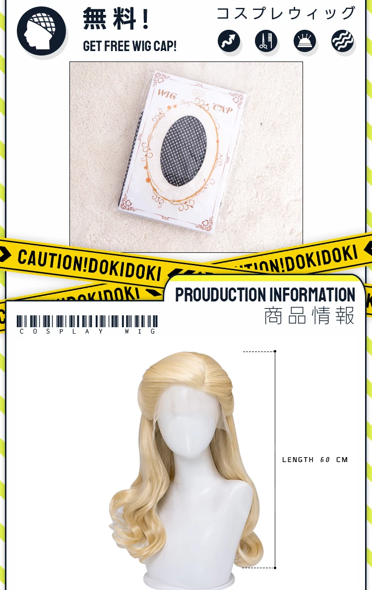 Glinda Elphaba Cosplay Wig Anime Wicked DokiDoki Front Lace Wig Golden Long 60cm Hair Glinda Cosplay Elphaba Hat Free Cap