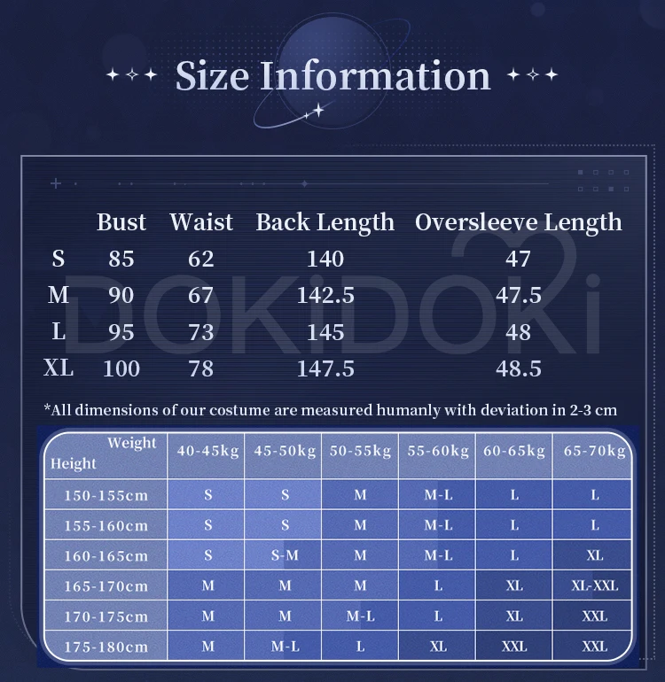 Asian size-Please read the size chart carefully. (◕ˇ∀ˇ◕)Welcome contact us for help about size choosing with your height ,weight ,waist ,bust,hip measurement.