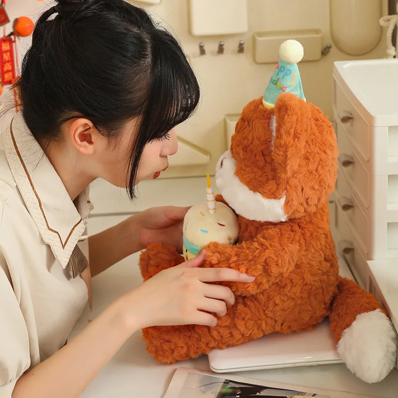 High Quality Birthday Gift Plush Toy Soft Cute Bear Fox Doll with Cake Decor Proposal Suprise Gift For GirlFriend