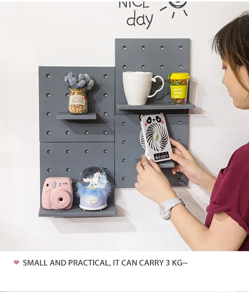 Home Decor Wall Shelves Decoration Hole Board Wall Storage Rack Storage Shelf Kitchen Bedroom Hanging Wall Shelves Wall Decor