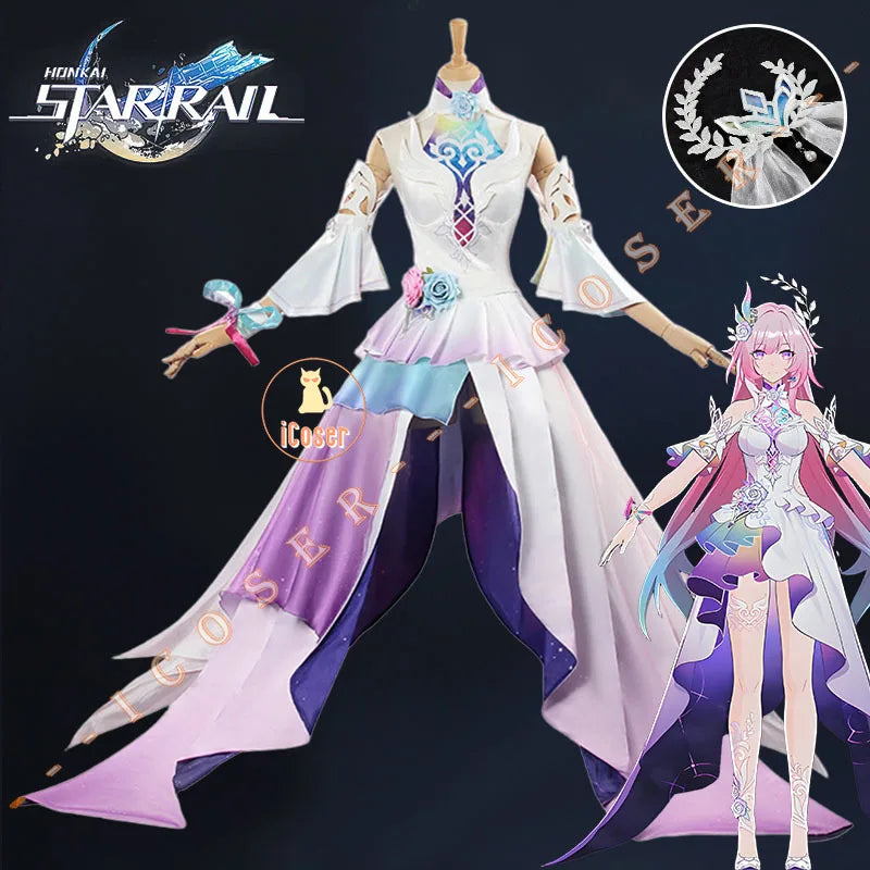 Honkai Star Rail Cyrene Cosplay Costume Wig Dress Headwear Earrings New Skin 5-star Outfit Elysia Amphoreus Halloween Women Girl