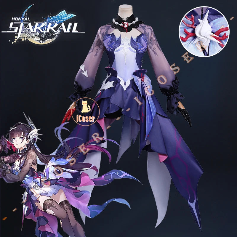 Honkai Star Rail Hysilens Cosplay Costume Wig Dress Headwear Earrings Rings Halloween Party for Women Girls Carnival Role Play