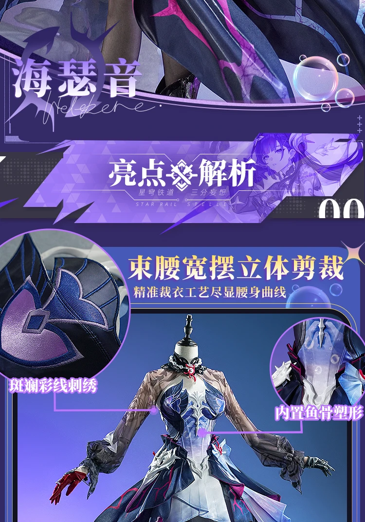 Honkai Star Rail Hysilens Cosplay Costume Wig Dress Headwear Uniform Outfit Halloween Party for Women Girls Carnival Prop iCoser