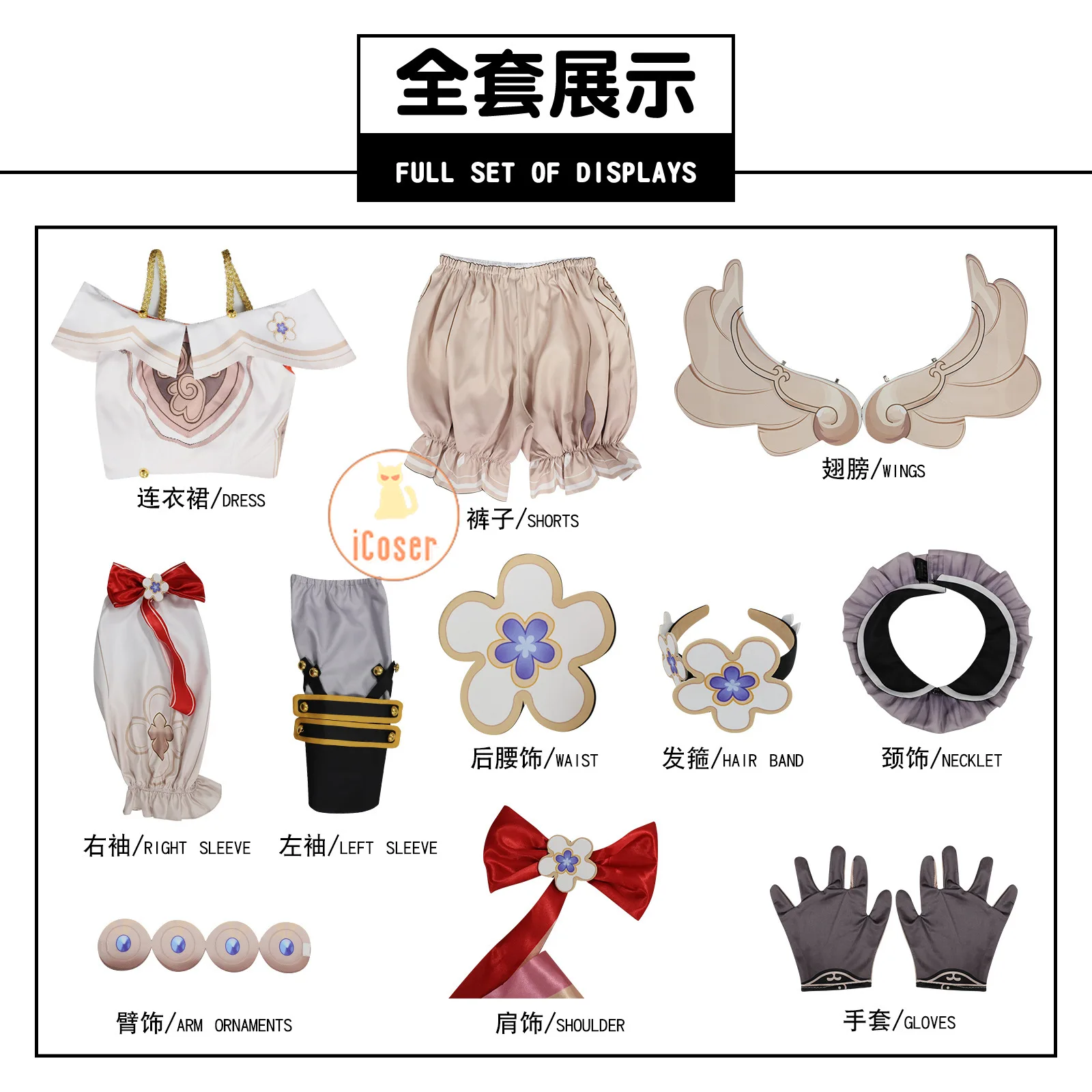 Components: shorts,DRESSES,Headwear,Wings