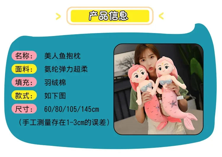 Hot 45-120cm Cartoon Kawaii Gaint Mermaid Plush Doll Pillow Colorful Beautiful Ocean Mermaid Plush Toy for Girls Christmas Gift