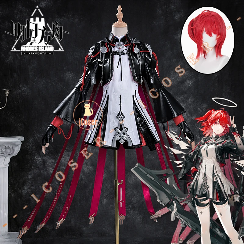 iCoser Arknights Exusiai The New Covenant Cosplay Costume Wig Uniform Headwear Earrings Halloween Party for Women Girls Carnival
