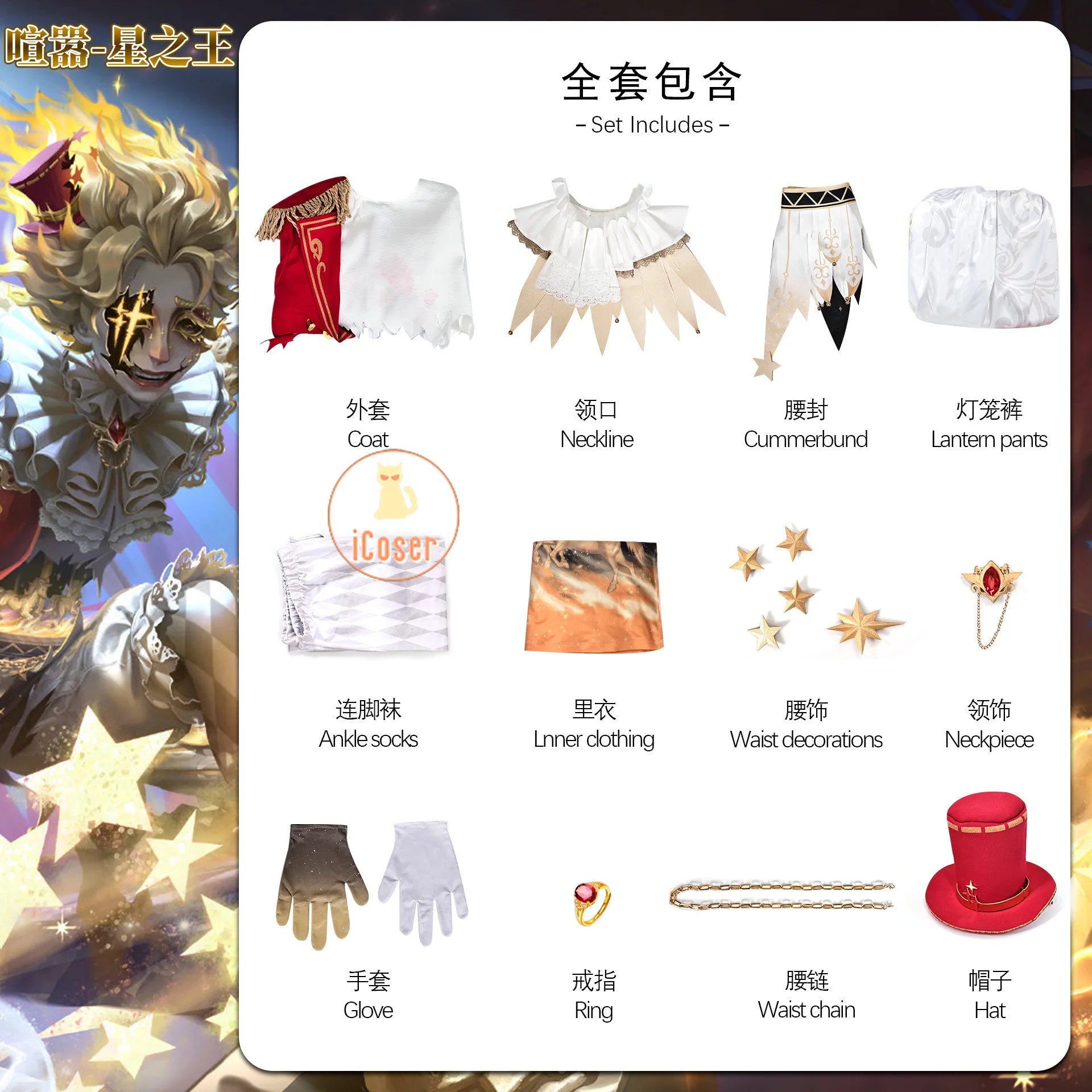 iCoser Identity V Hullabaloo Brightest Star Cosplay Costume Wig Mike Morton Uniform Hat Ring Halloween Party Women Men Carnival