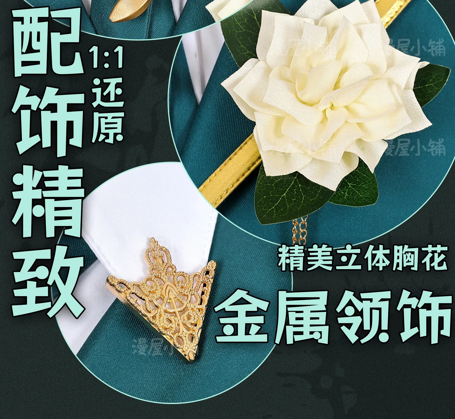 Identity V Art Dealer Cosplay Costume Wig Knight Richard Sterling Uniform Glasses Hat Roy Ramit Halloween Party for Women Men