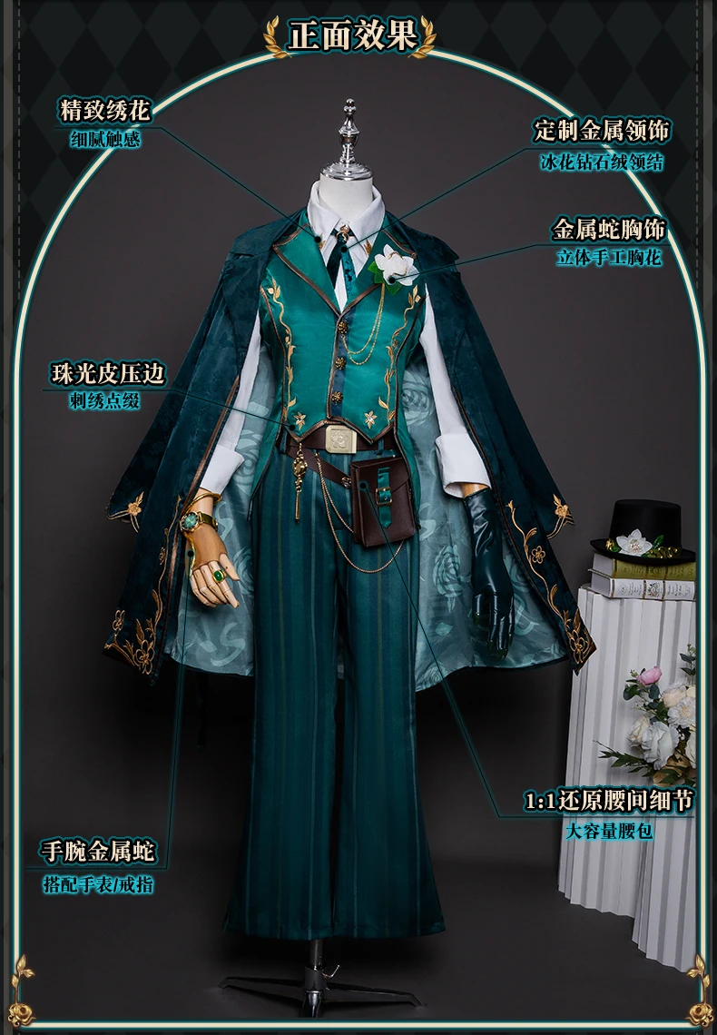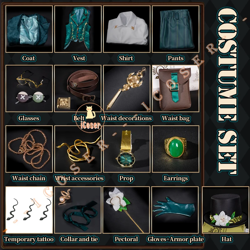 Identity V Art Dealer Cosplay Costume Wig Uniform Knight Richard Sterling Glasses Hat Roy Ramit Halloween Women Men Carnival Cos