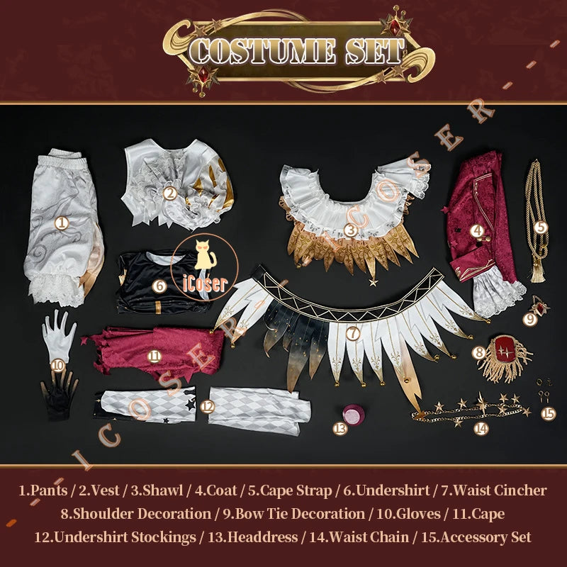 Identity V Hullabaloo Mike Morton Brightest Star Cosplay Costume Wig Uniform Hat Props Halloween Party for Women Men Carnival