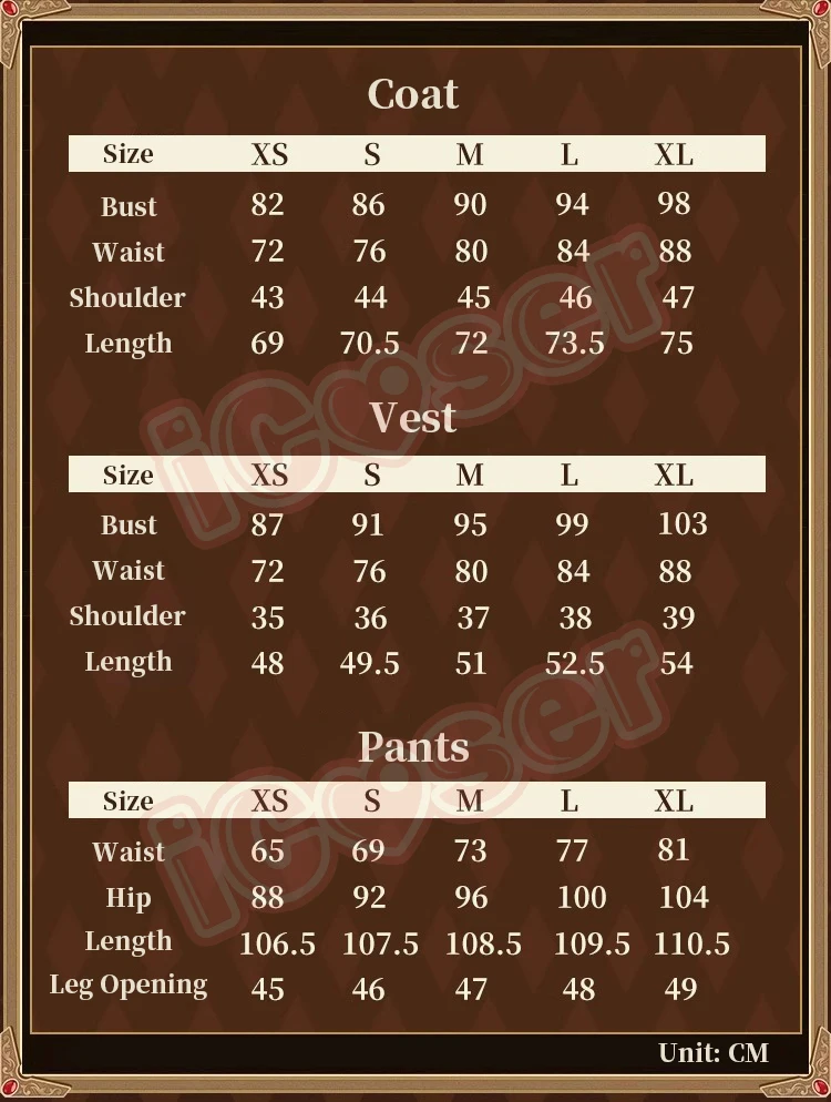 Components: Top,Pants,Vest,Jackets
