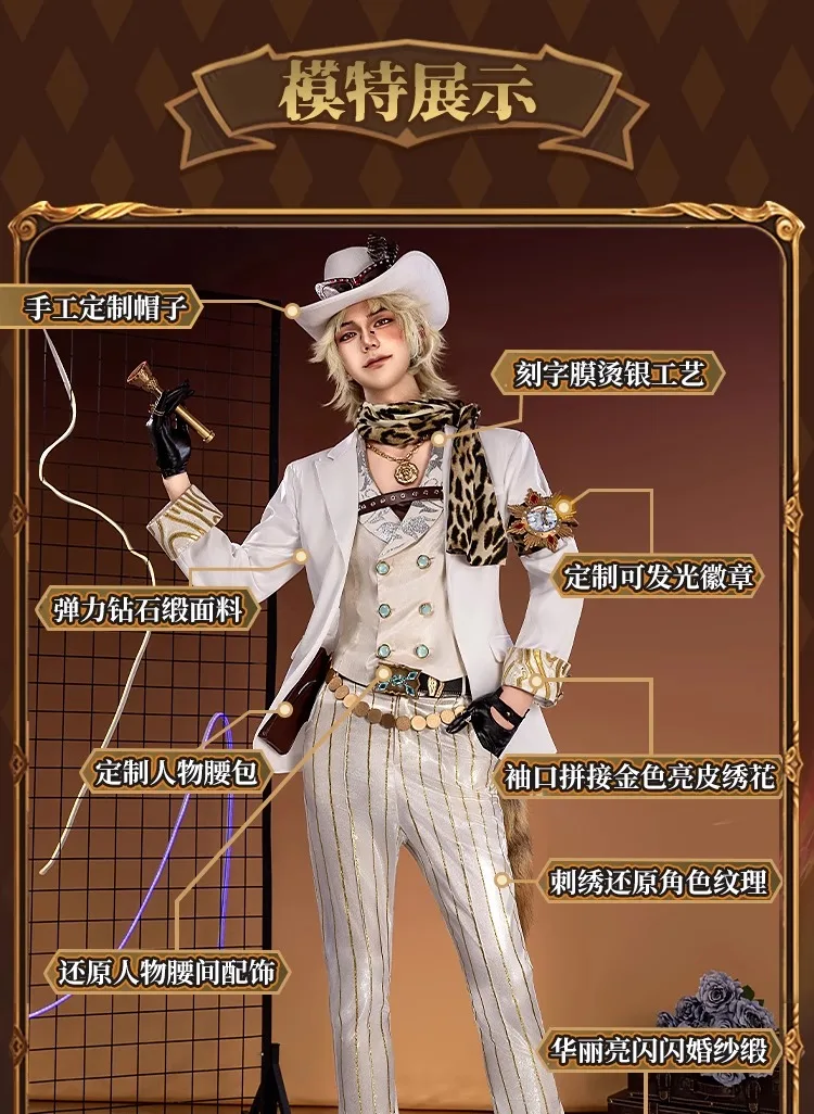 Identity V Prospector Cosplay Costume Norton Campbell Uniform Hat Gambler in The Spotlight Halloween for Women Men Carnival Prop