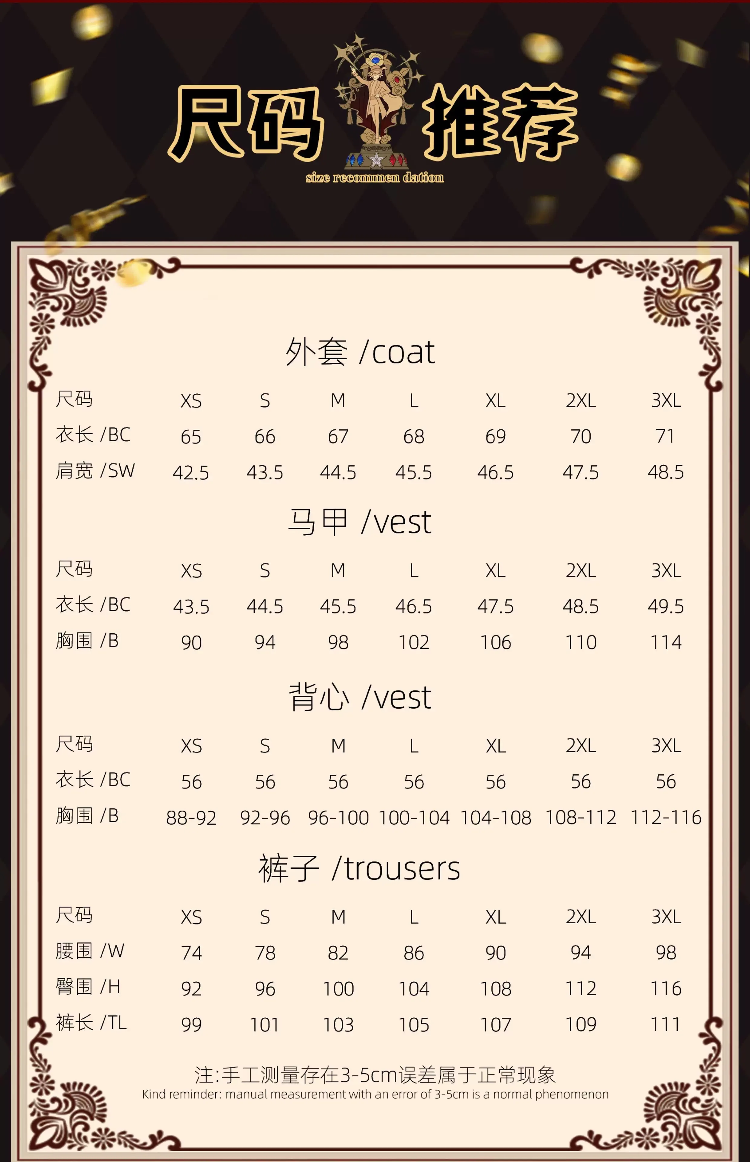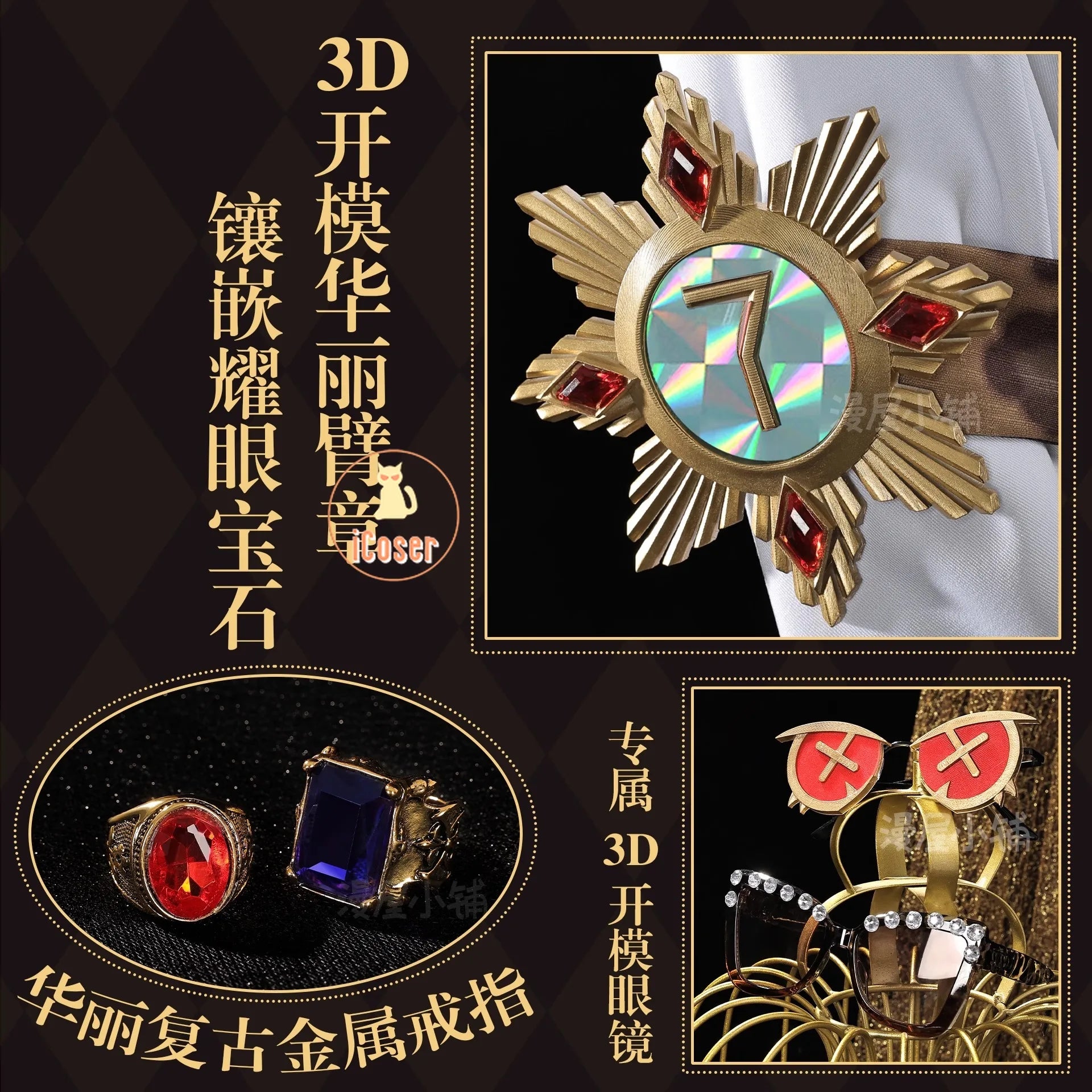 Components: Top,Pants,Vest,Jackets,Glasses,Necklace,Rings,Hat,Gloves