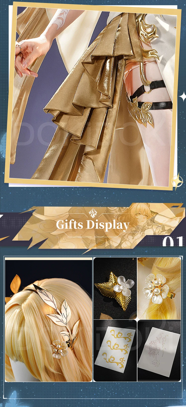 IN STOCK Aglaea Cosplay Costume Game Honkai: Star Rail DokiDoki-SR HSR Women Golden Gorgeous Dress Aglaea Halloween Wig