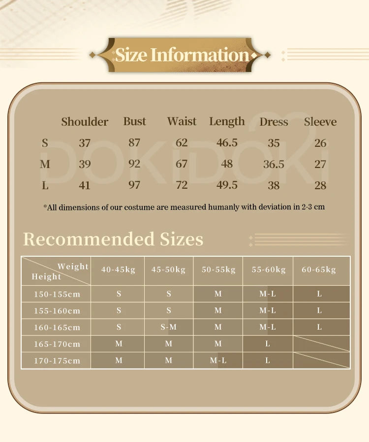 Asian size-Please read the size chart carefully. (◕ˇ∀ˇ◕)Welcome contact us for help about size chooseing with your height ,weight ,waist ,bust,hip measurement.