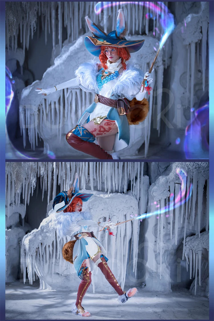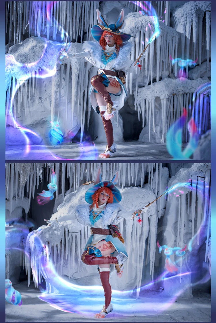 IN STOCK Auroraa Kaynn Cosplay Costume Game Cosplay DokiDoki-R Women Auroraa Witch Costume Mace Hat Ears Props