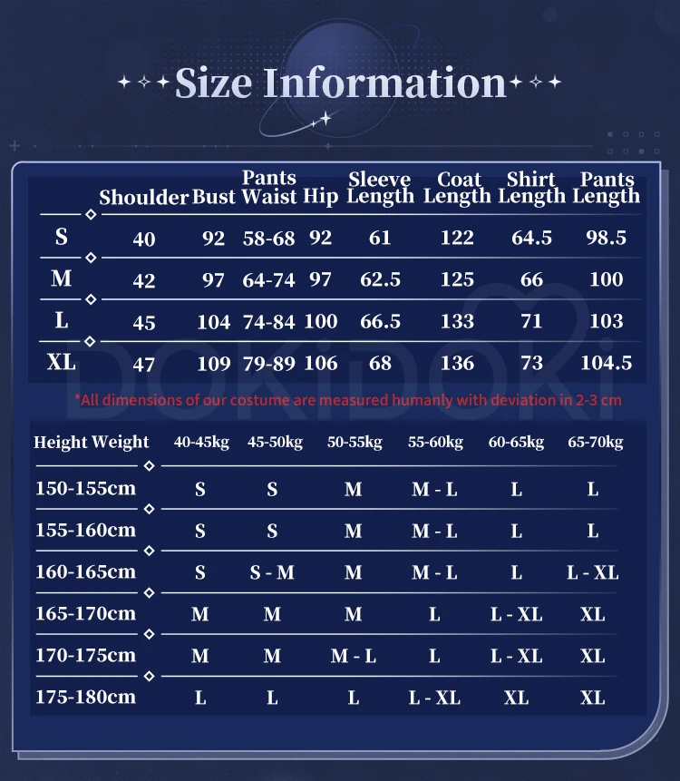 Please read the size chart carefully. (◕ˇ∀ˇ◕)Welcome contact us for help about size choosing with your height ,weight ,waist ,bust,hip measurement.