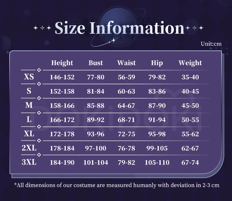 Please read the size chart carefully. (◕ˇ∀ˇ◕)Welcome contact us for help about size choosing with your height ,weight ,waist ,bust,hip measurement.