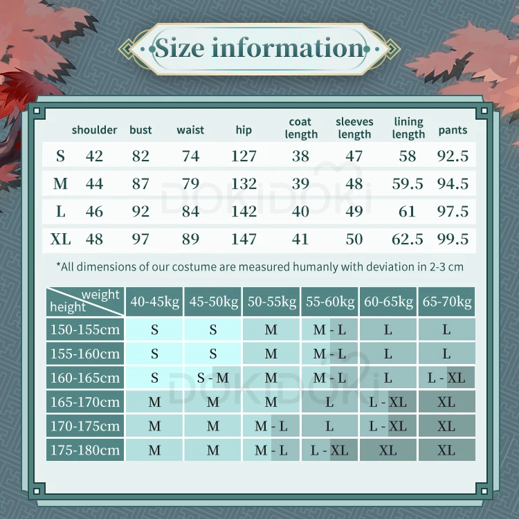 Asian size-Please read the size chart carefully. (◕ˇ∀ˇ◕)Welcome contact us for help about size choosing with your height ,weight ,waist ,bust,hip measurement.