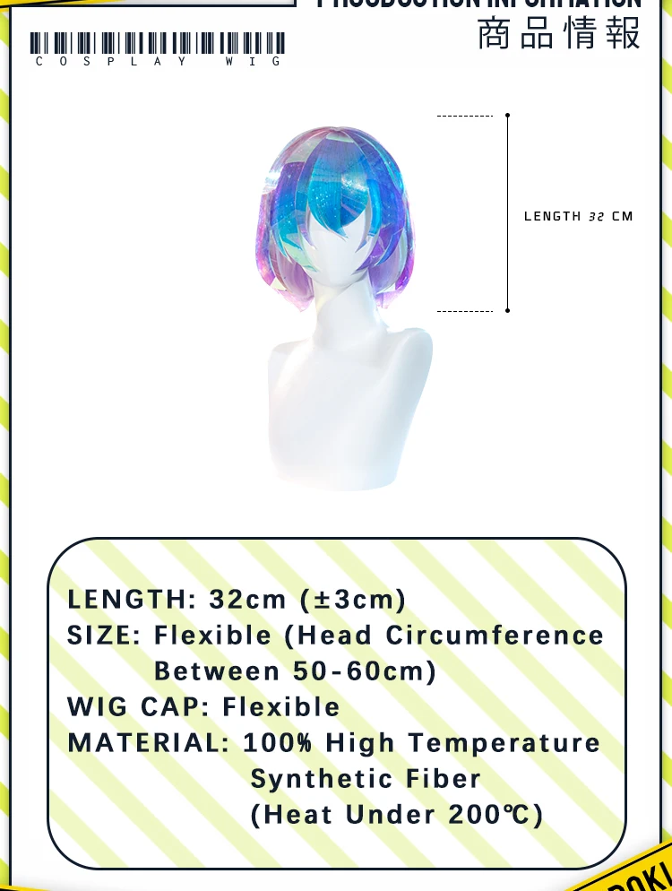 IN STOCK Diamond Wig Anime Land of the Lustrous DokiDoki Women 32cm Short Rainbow Gradient Heat Resistant Hair Free Wig Cap