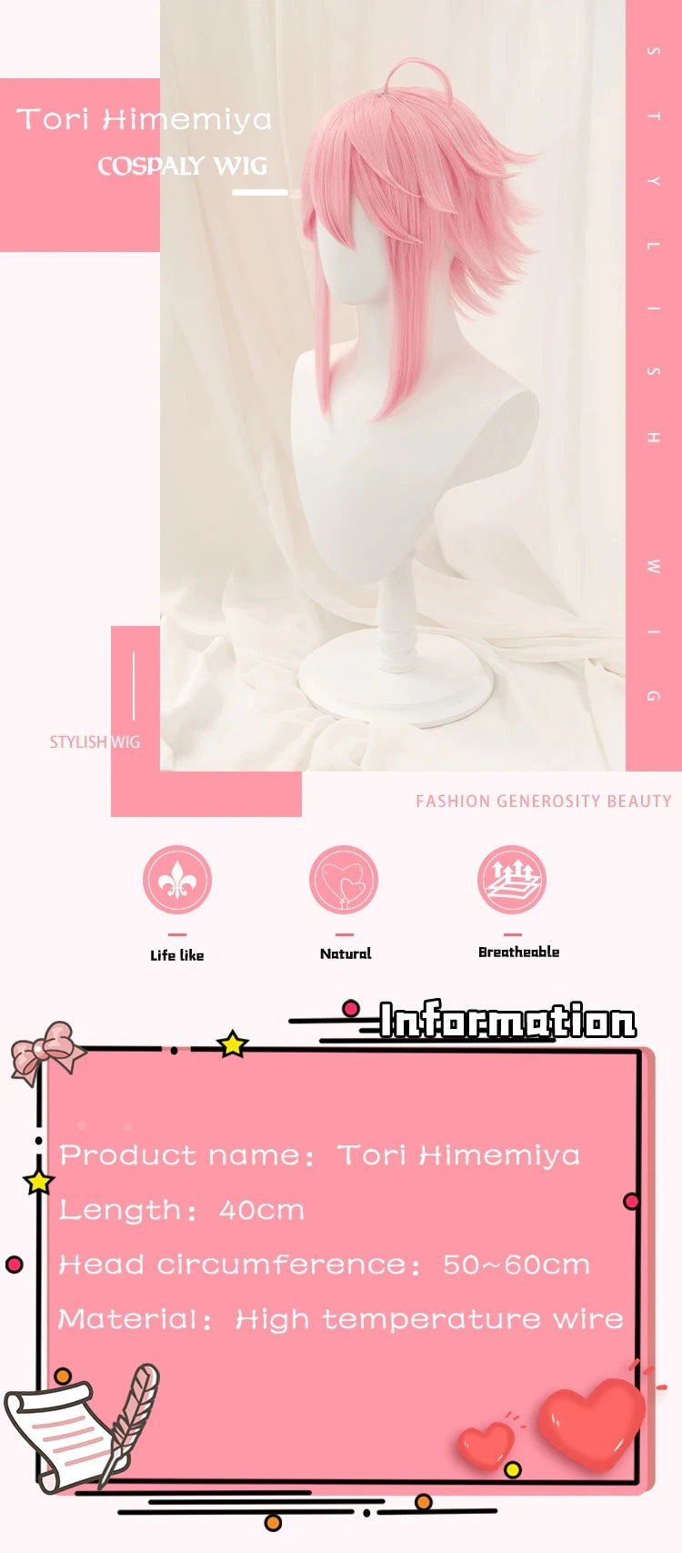 IN STOCK DokiDoki Game Ensemble Stars 2 Branco Cosplay Tori Himemiya Pink Short Wig Ensemble Stars 2 Branco Tori Himemiya