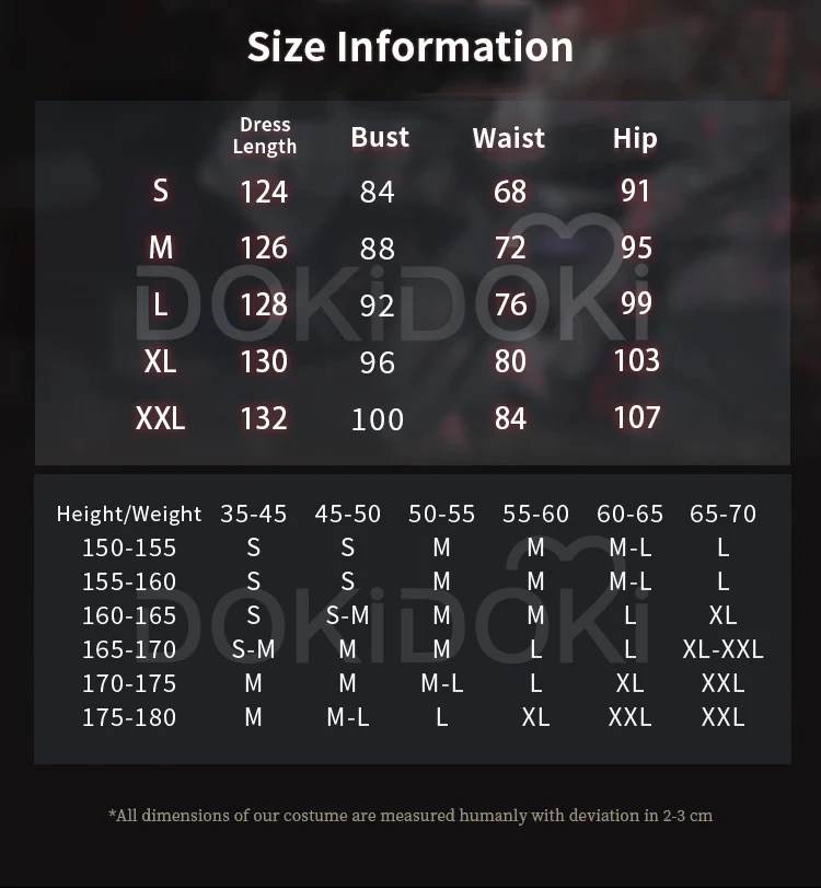Please read the size chart carefully. (◕ˇ∀ˇ◕)Welcome contact us for help about size choosing with your height ,weight ,waist ,bust,hip measurement.