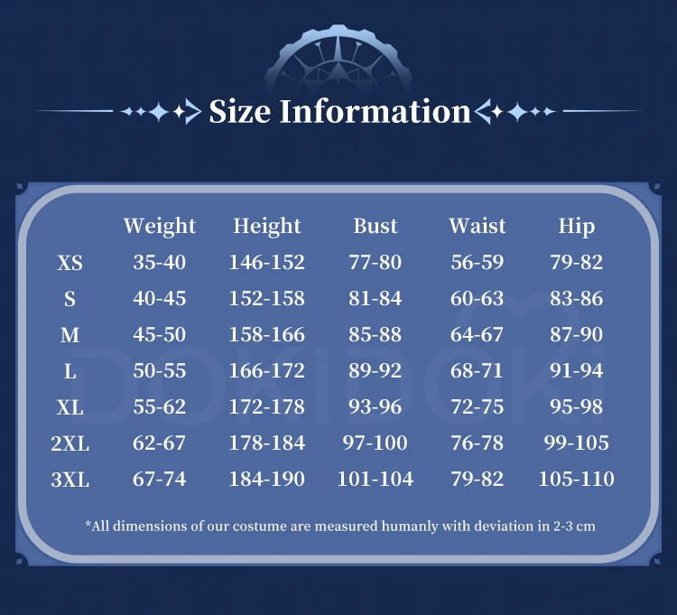 Please read the size chart carefully. (◕ˇ∀ˇ◕)Welcome contact us for help about size choosing with your height ,weight ,waist ,bust,hip measurement.