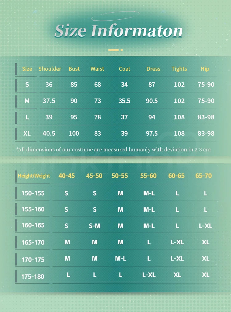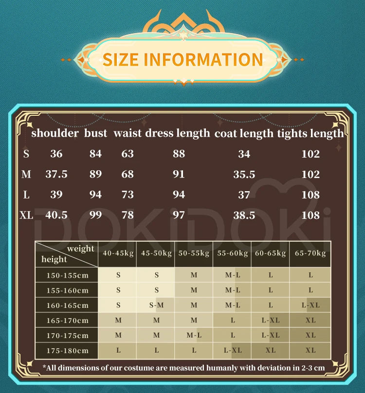 Please read the size chart carefully. (◕ˇ∀ˇ◕)Welcome contact us for help about size choosing with your height ,weight ,waist ,bust,hip measurement.