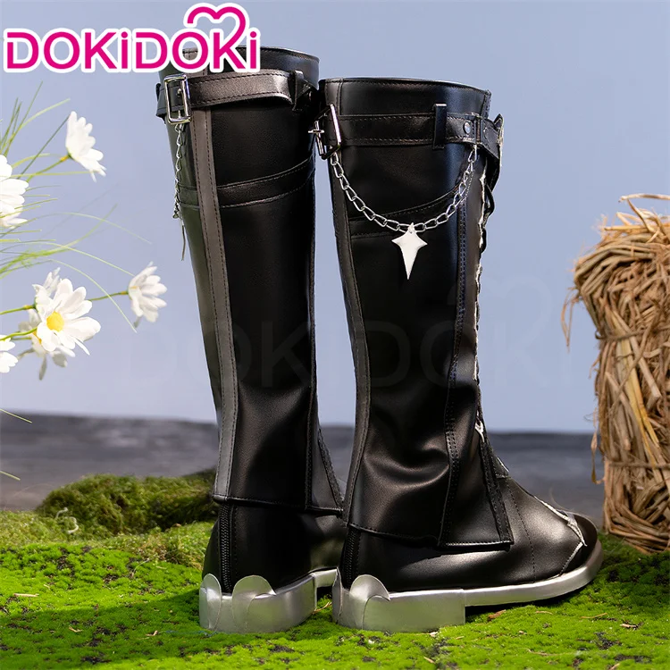 IN STOCK Flins Cosplay Shoes Game Genshin Impact DokiDoki Men Long Black Boots Kyryll Chudomirovich Flins Halloween Cosplay
