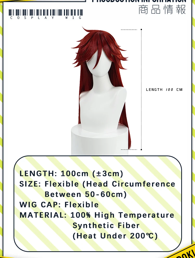 IN STOCK Grell Sutcliff Wig Anime DokiDoki Halloween Grell Sutcliff Cosplay 100cm Red Long Hair Free Cap