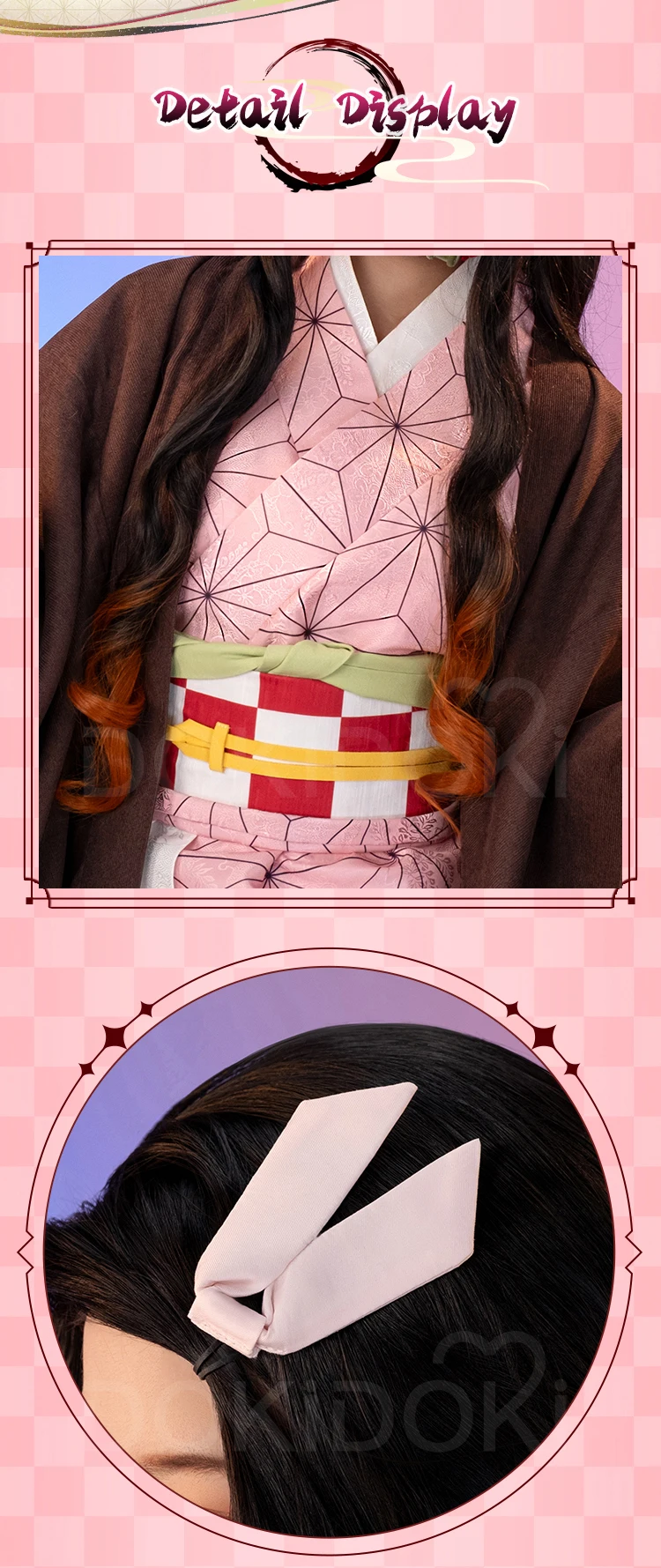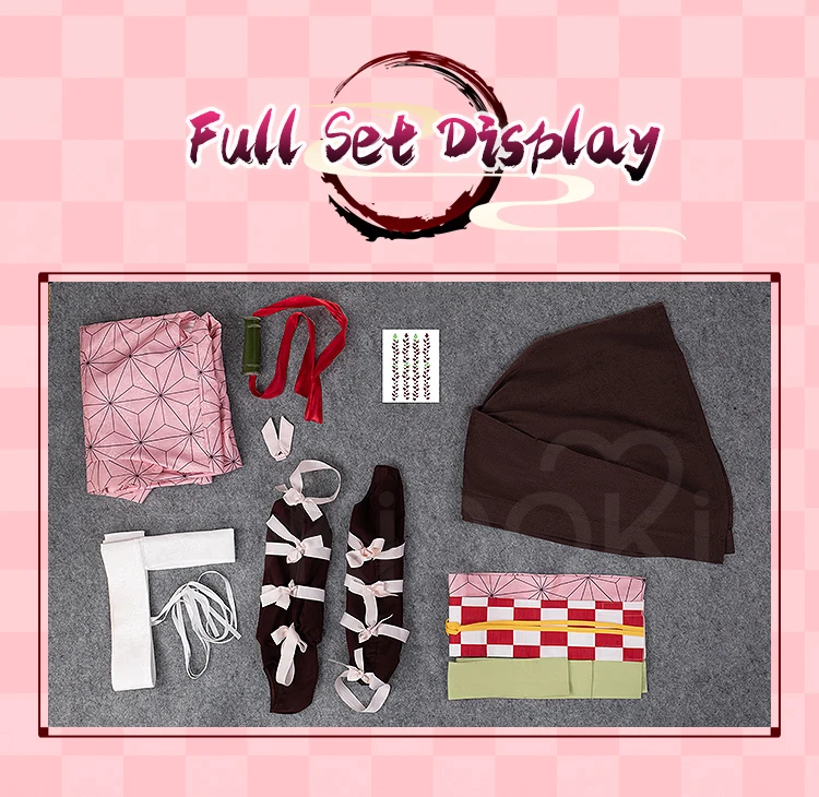 IN STOCK Kamadoo Nezukoo Cosplay Costume Anime DokiDoki-SR Women Pink Kimono Nezukoo Halloween Cosplay Wig Props