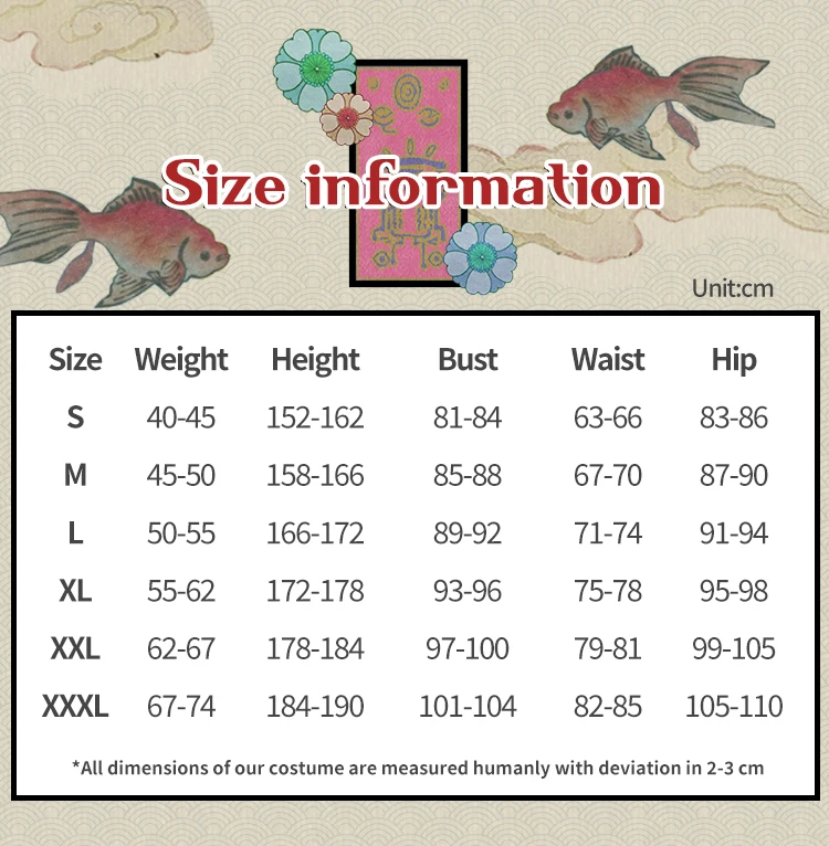 Please read the size chart carefully. (◕ˇ∀ˇ◕)Welcome contact us for help about size choosing with your height ,weight ,waist ,bust,hip measurement.