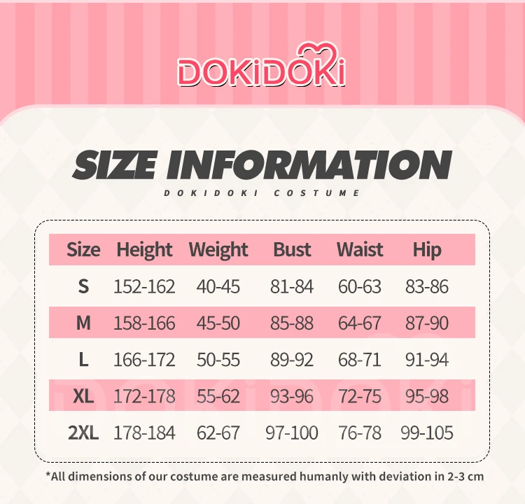 Please read the size chart carefully. (◕ˇ∀ˇ◕)Welcome contact us for help about size choosing with your height ,weight ,waist ,bust,hip measurement.