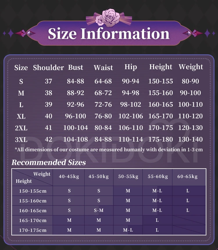 Please read the size chart carefully. (◕ˇ∀ˇ◕)Welcome contact us for help about size choosing with your height ,weight ,waist ,bust,hip measurement.