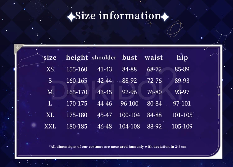 Please read the size chart carefully. (◕ˇ∀ˇ◕)Welcome contact us for help about size choosing with your height ,weight ,waist ,bust,hip measurement.