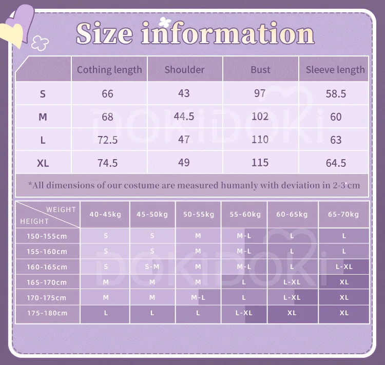 Please read the size chart carefully. (◕ˇ∀ˇ◕)Welcome contact us for help about size choosing with your height ,weight ,waist ,bust,hip measurement.
